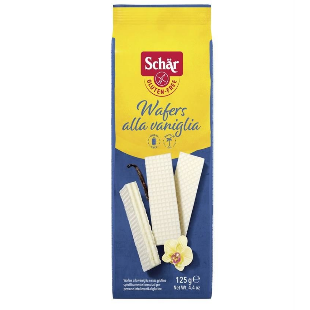 Schar Wafers Vaniglia Glutensiz Vanilyalı Gofret ince ve çıtır gofret katmanları arasına sütlü vanilya kreması doldurularak hazırlanmış glutensiz bir sandviç gofret alternatifidir. Patates nişastası ve pirinç unu bazlı yapısı sayesinde buğday unu içermeden üretilir. Glutensiz beslenmesi gereken tüketiciler için klasik vanilyalı gofret lezzetini yeniden ulaşılabilir hale getirir.