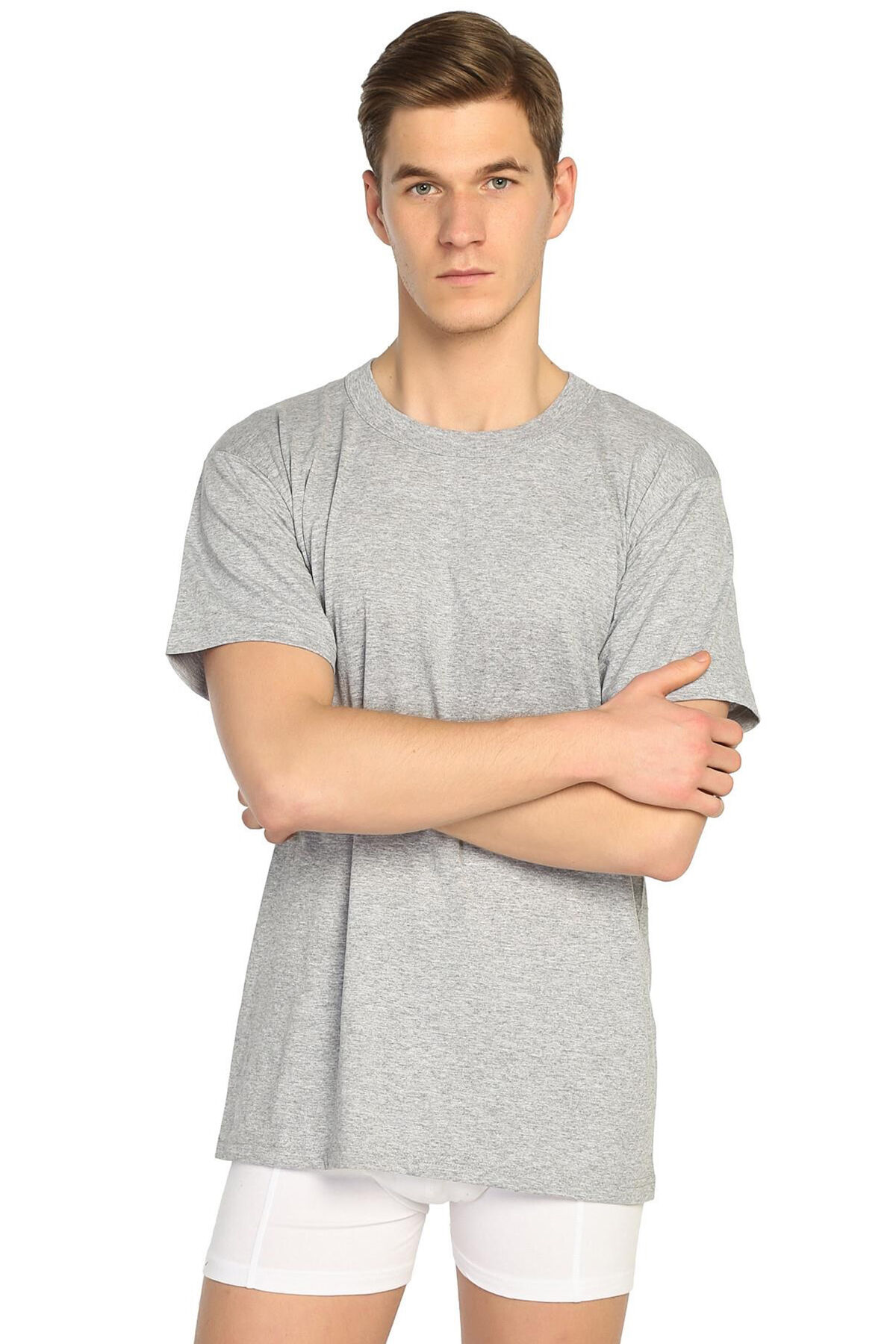 003 Renkli Erkek Sıfır Yaka Fanila 6 Adet - Gri