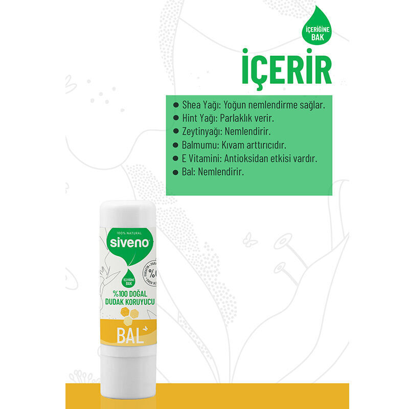 • Siveno %100 Doğal Dudak Koruyucu - Bal ürününü dudaklarınızı nemlendirmeye ihtiyaç duyduğunuz her an uygulayabilirsiniz.