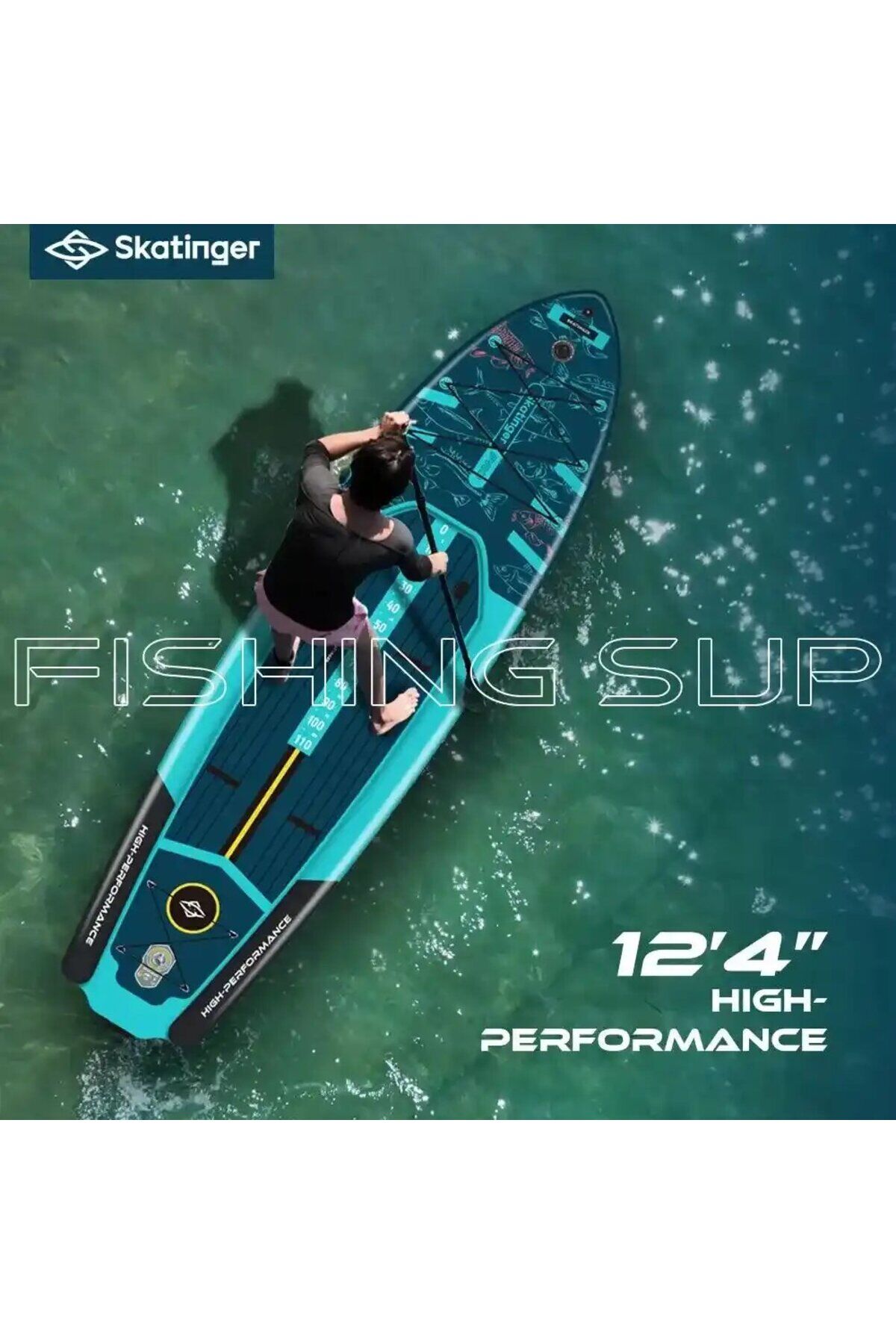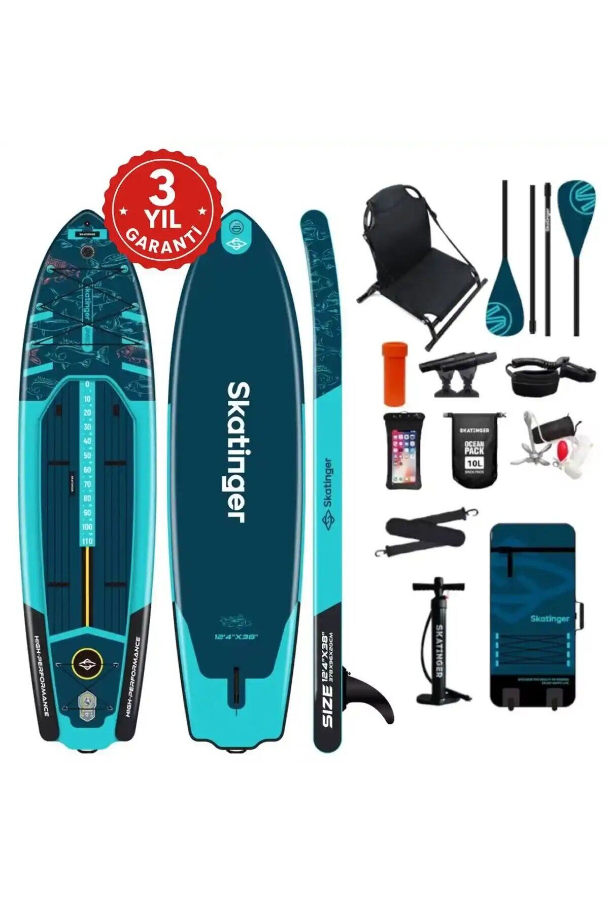 Skatinger Fishing Sup Paddle Board 378x96x(12+8)cm Koltuklu&olta Tutuculu Balıkçı Şişme Sörf Tahtası Full Set