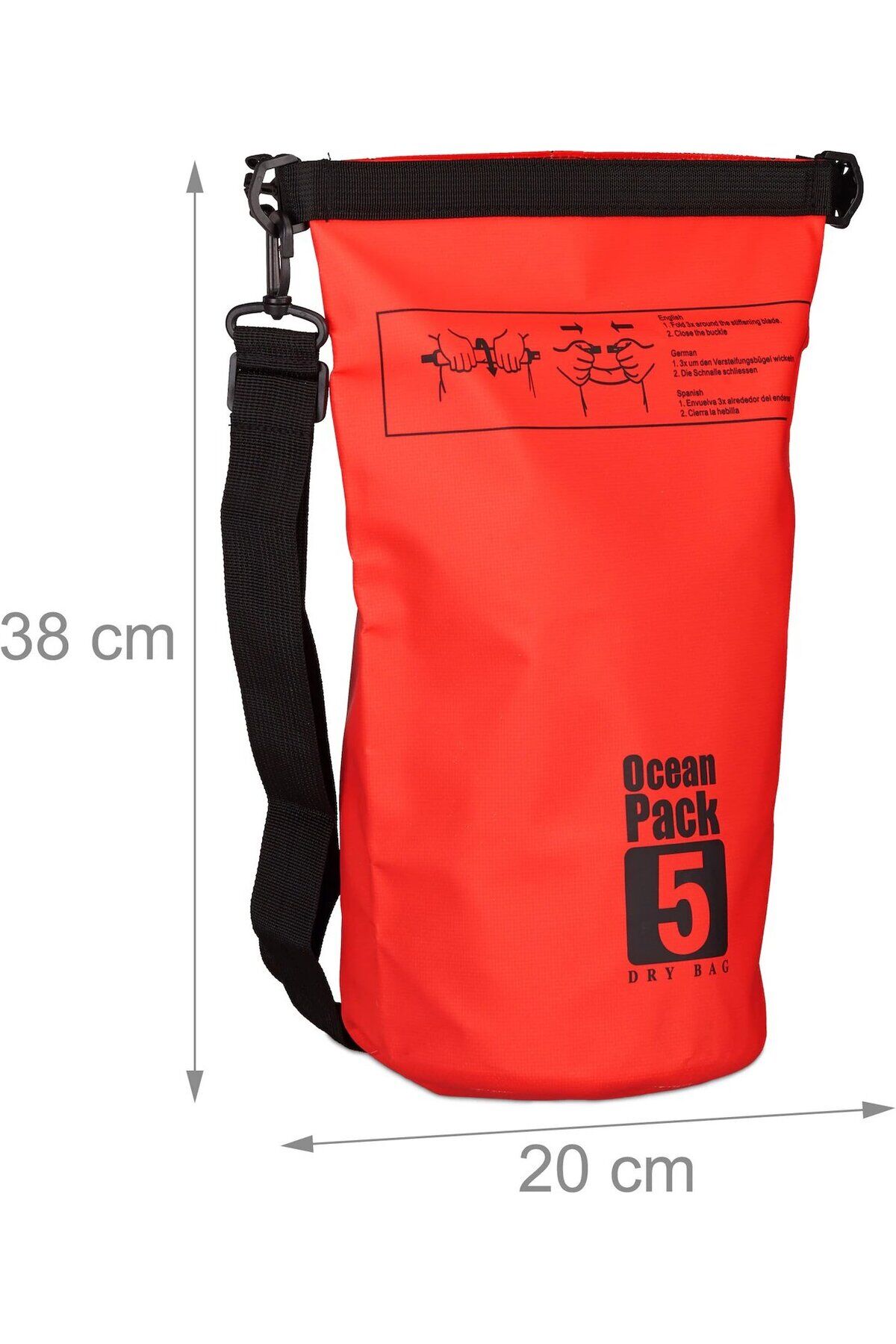 5 litre su geçirmez çanta taşıma ipi ile kolaylıkla taşırsınız.; ; Sup paddle board üzerinde iken sulardan etkilenmemek için tasarlanmıştır.; ; Kano, rafting, su sporları, tekne, bot vb yerlerde değerli eşyalarınızı yanınıza alabilirsiniz.; ; Elle taşıma askısı ; Yükseklik(h) = 37 cm (katlanmamış hali) ; Çap(R) = 19 cm ;