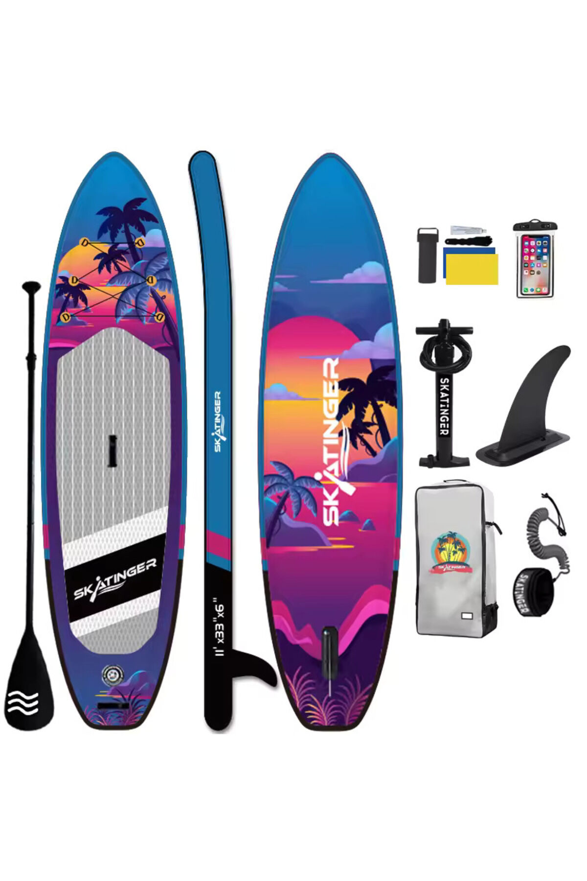 Skatinger Sunset Sup Board Double Layer 335 x 84 x 15 cmPaddle Board Skatinger Şişme Sörf Tahtası Full Set