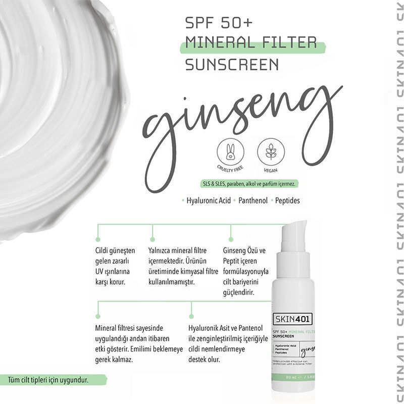 Skin401 SPF 50+ Mineral Filtre Güneş Kremi 50 ml
