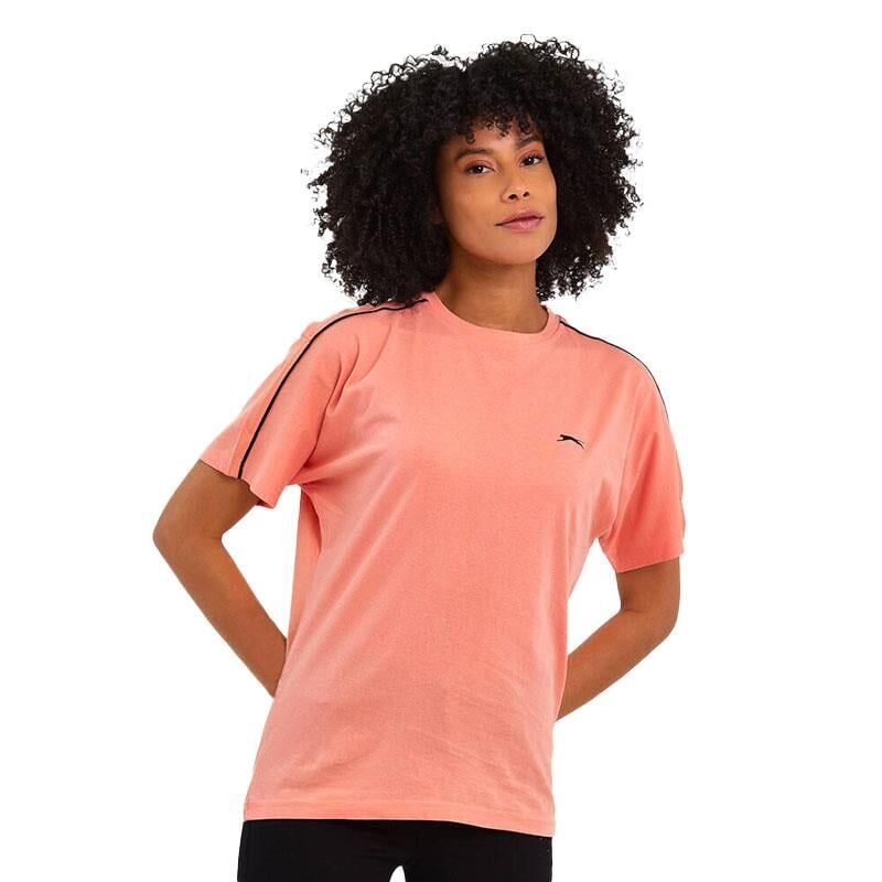 Slazenger'in "Moyna-Pudra" model kadın tişörtü, hem spor aktiviteleri hem de günlük kullanım için tasarlanmış şık ve konforlu bir üründür.