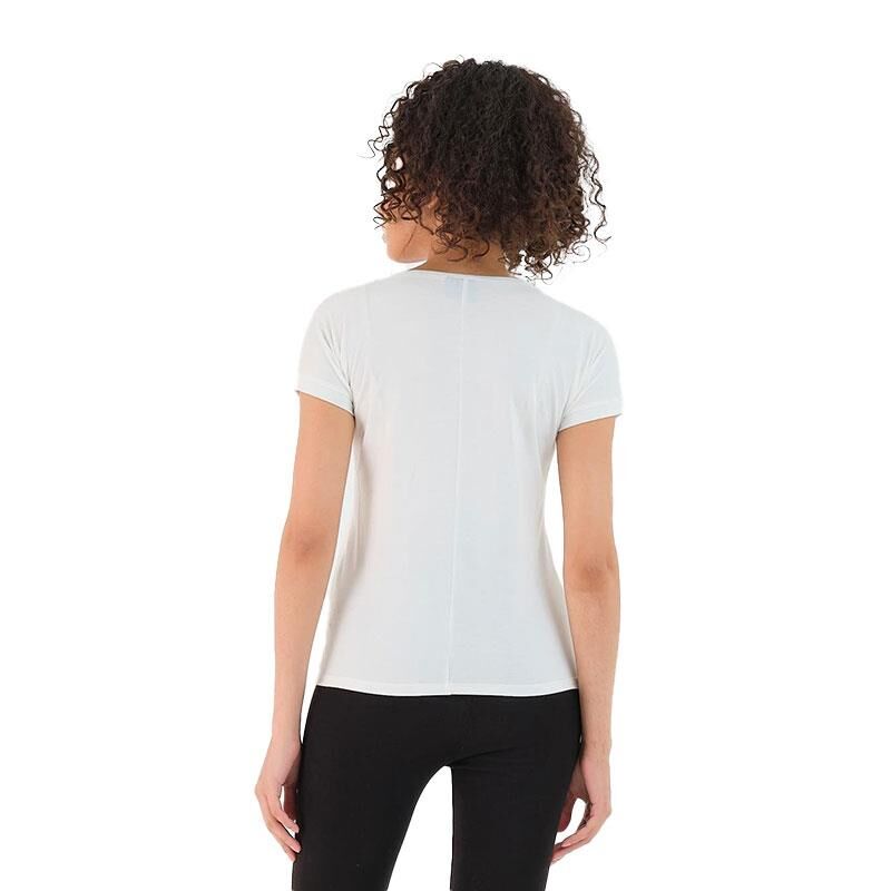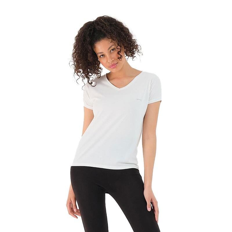 Slazenger'in "PLAY-Ekru" model kadın tişörtü, hem spor aktiviteleri hem de günlük kullanım için tasarlanmış şık ve rahat bir üründür.