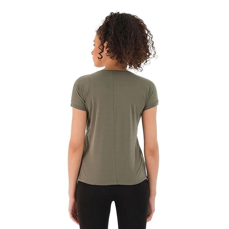 Slazenger'in "PLAY-Haki" model kadın tişörtü, hem spor aktiviteleri hem de günlük kullanım için tasarlanmış şık ve rahat bir üründür.