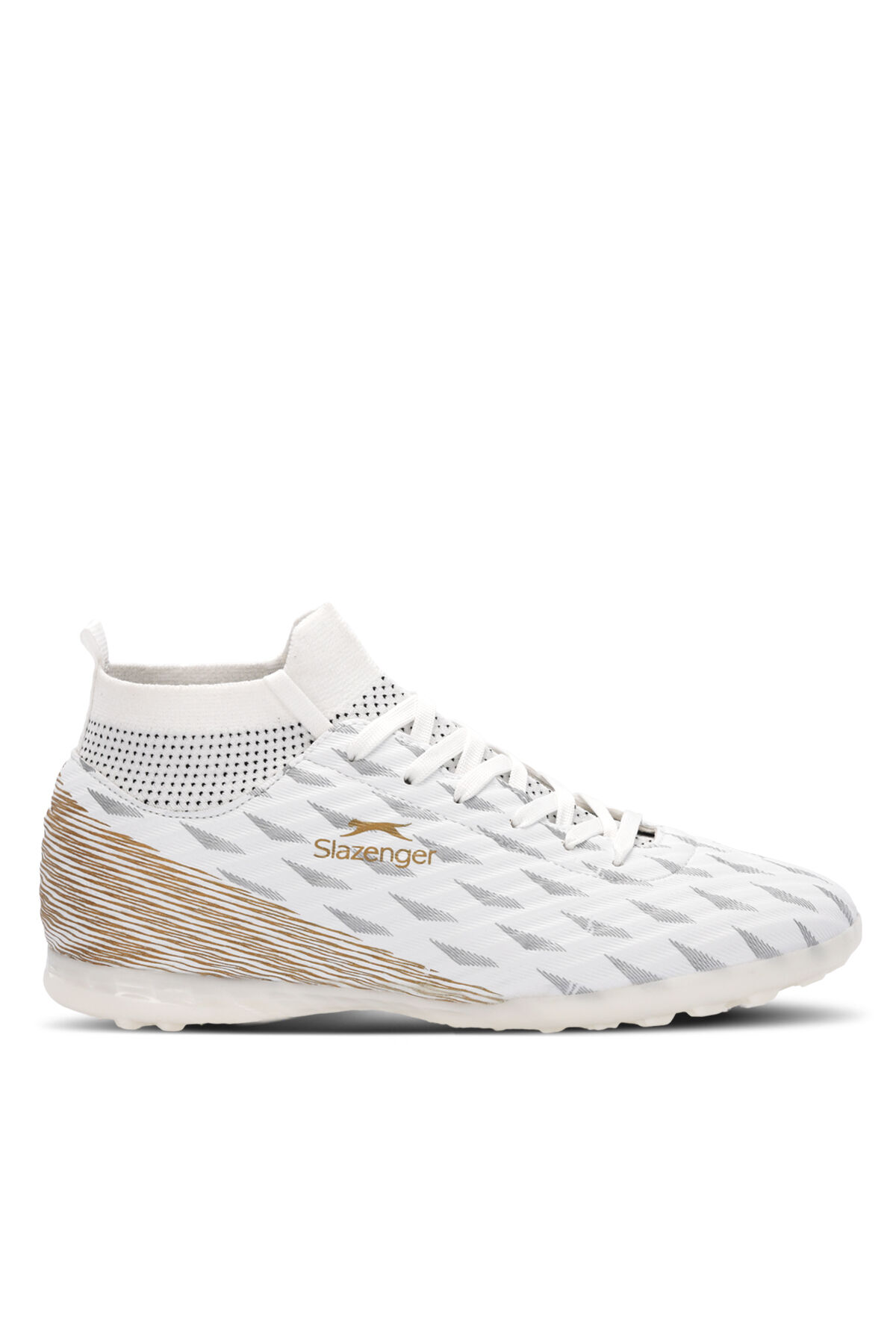 Slazenger Futbol ayakkabısı, ayaklara maç boyunca hafif yastıklama hissi verir. Hem gerçek hem de suni çim üzerinde mükemmel bir tutuş göstermek için tasarlanmıştır. Topuktan buruna kadar dokulu suni malzemeyle tasarlanan ürün, maç esnasında yüksek hızda yaratıcılığı sergilemek için gereken teması sağlıyor.
