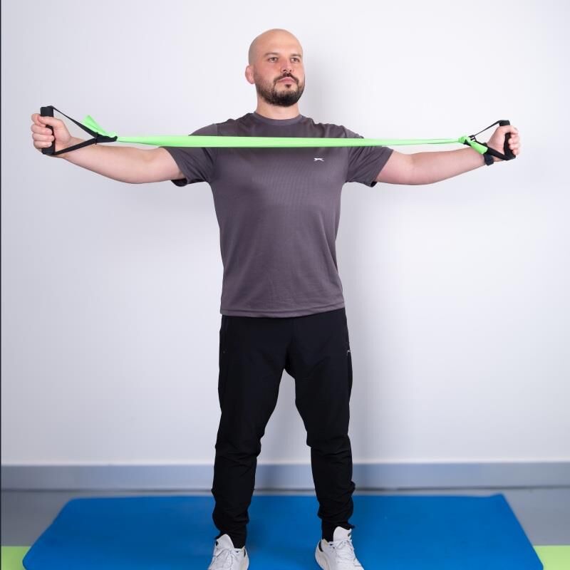 Orta dirençli egzersiz bandı ile kaslarınızı esnetebilir, direncinizi arttırabilir, merkez gücünüzü kuvvetlendirebilirsiniz. Elcikleri sayesinde ellerinizi rahat konumlandırarak direnç bandına daha hâkim bir şekilde egzersiz yapabilirsiniz.