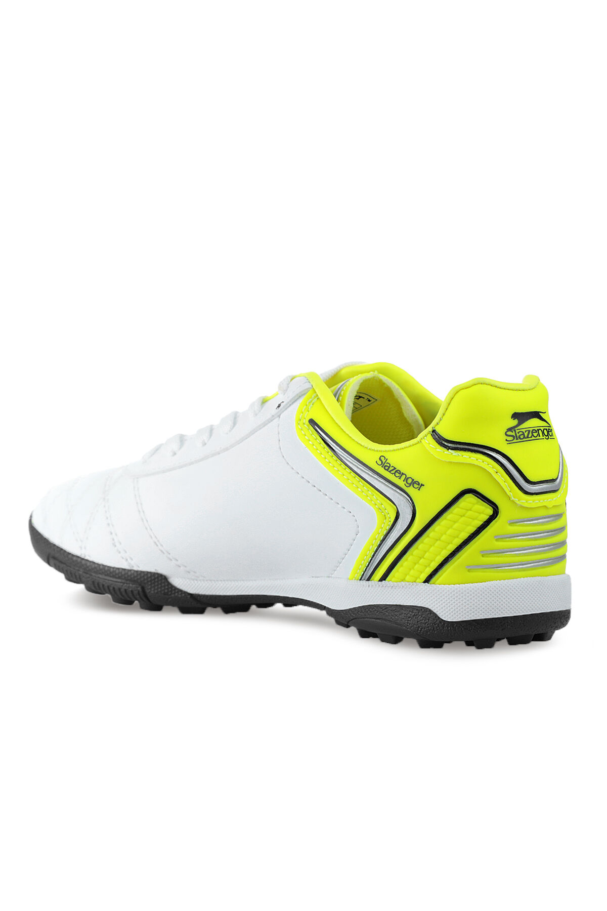 Slazenger Futbol ayakkabısı, ayaklara maç boyunca hafif yastıklama hissi verir. Hem gerçek hem de suni çim üzerinde mükemmel bir tutuş göstermek için tasarlanmıştır. Topuktan buruna kadar dokulu suni malzemeyle tasarlanan ürün, maç esnasında yüksek hızda yaratıcılığı sergilemek için gereken teması sağlıyor.