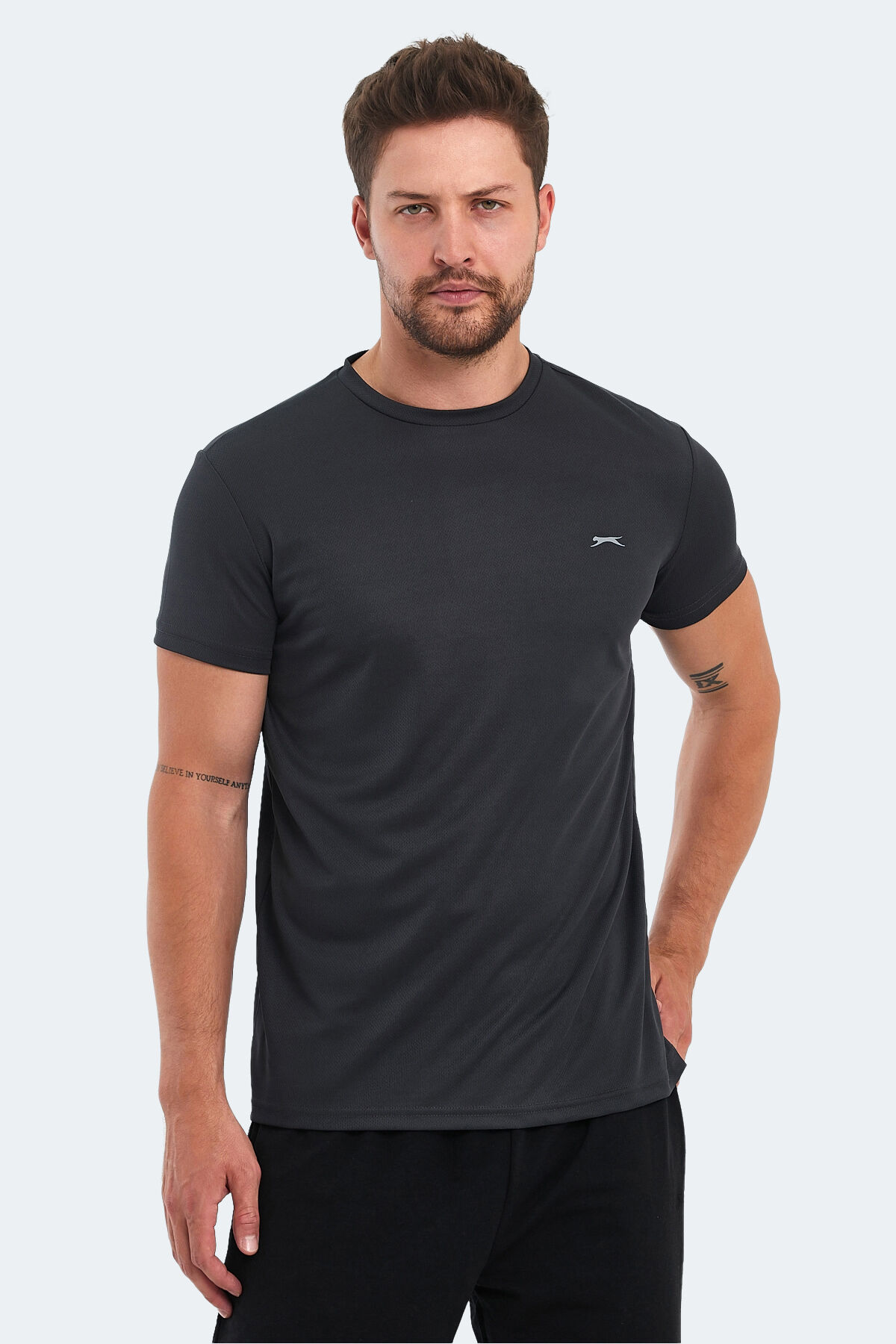 Slazenger OMAR KTN Erkek T-Shirt Koyu Gri Koyu Gri