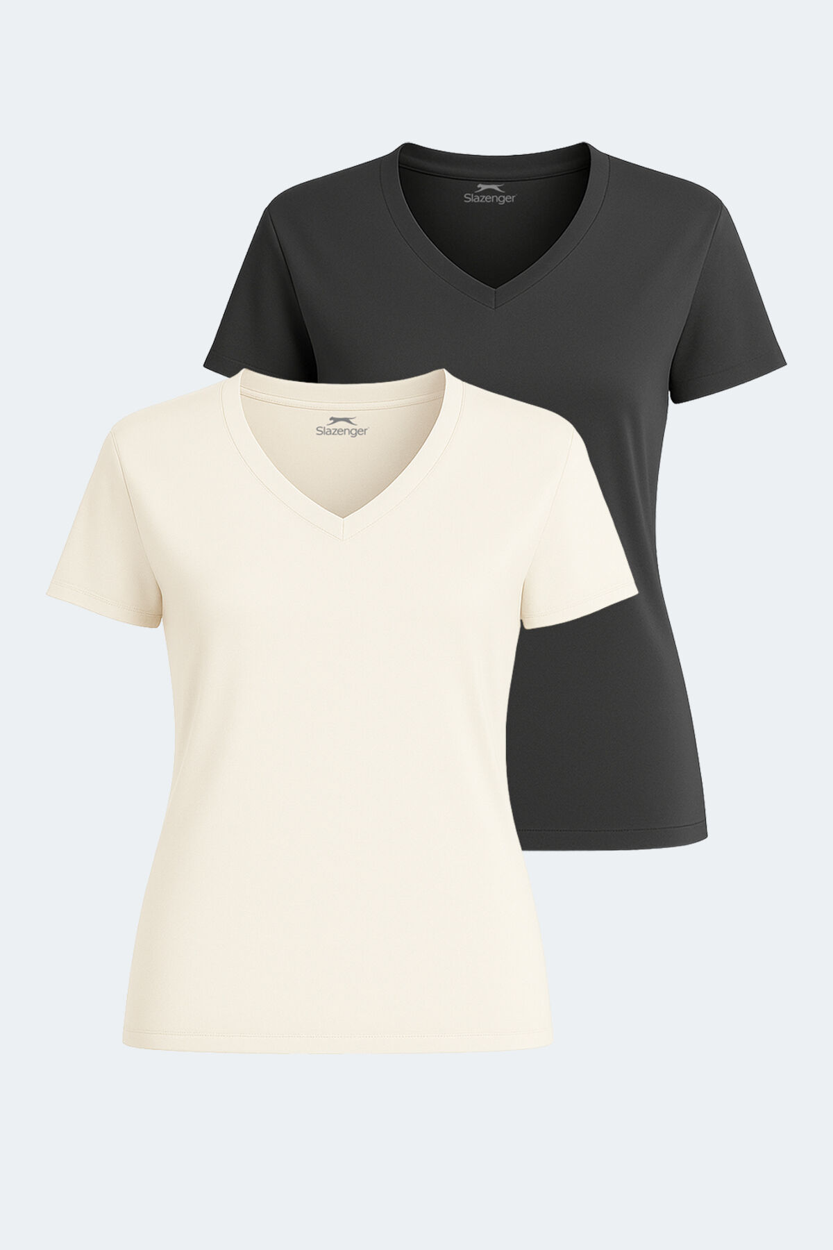 Slazenger PERICAS 2'li Set Kadın Tişört Ekru - Koyu Gri