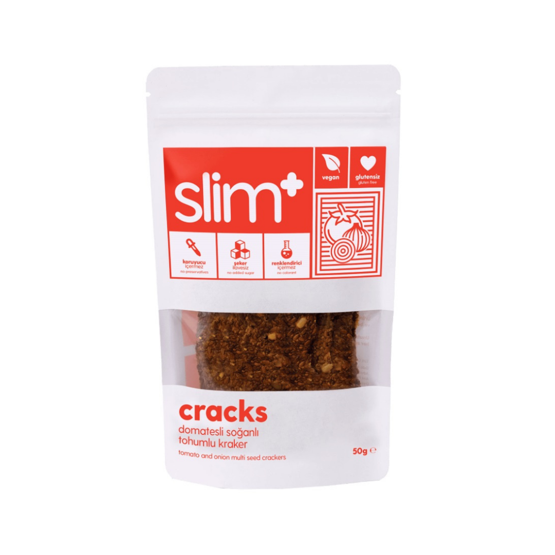 Eğer çıtır çıtır ve lezzetli bir atıştırmalık arıyor, sağlıklı ve doğal bir ürün bulamıyorsan daha uzağa bakmana gerek yok! SlimPlus Domates Soğanlı Cracks ile her ısırığında enerji dolacak ve içeriğini dert etmeden keyfini çıkaracaksın! Tuzlu atıştırmalıklara sağlıklı ve doğal bir alternatif SlimPlus Cracks, doğal içeriğiyle seni bekliyor!