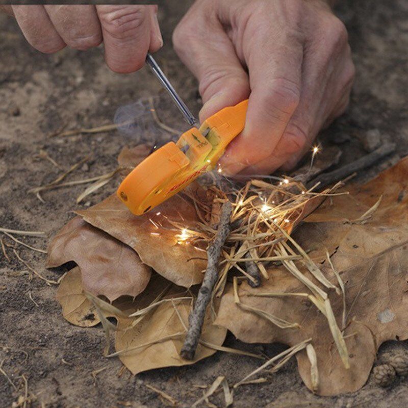 • Bileme yuvası, ateş başlatıcı çubuk ile birlikte kıvılcım çıkarmak için kullanılabilir.