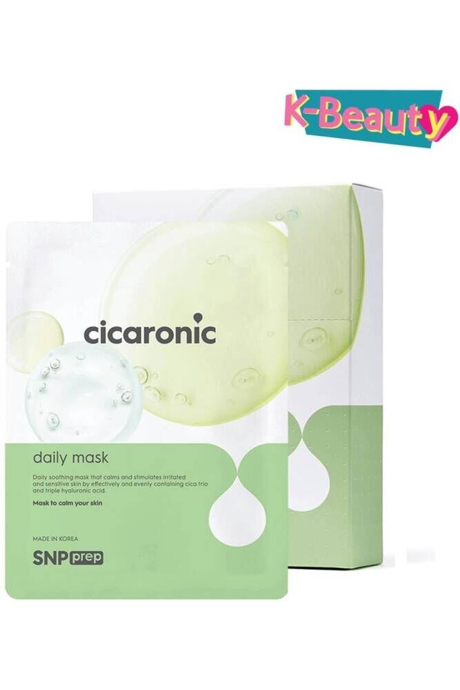 SNP tarafından geliştirilen patentli CICA-TRIO Kompleksi, üçlü hyaluronik asit ile buluştu! SNP Cicaronic Günlük Kağıt Maske, hyaluronik asit kullanımıyla derinlemesine nemlendirir, cilde son derece yumuşak ve hafif bir his vererek, cildinize genç, sağlıklı ve nemli bir görünüm kazandırır. ; SNP Cicaronic Serisi Yorgun ve zayıflamış cildiniz için, yatıştırıcı bileşen olan Cicatro ve nemlendirici madde olan üçlü hyaluronik asit, daha güçlü bir cilt bakımı rutini için birleştirilmiştir. ; Cica: Yatıştırıcı ve sakinleştirici Cicaronic Complex, hassas cilt tipleri düşünülerek özenle hazırlanmıştır. ; Cicaronic cilt bakım serisi, daha hızlı, daha güçlü ve iyileşmek için yorgun ve hassas cildi yatıştırmaya ve onarmaya yardımcı olmayı amaçlamaktadır. ; Yüksek moleküler hyaluronik asit ilavesi, normalde buharlaşma yoluyla kaybedilen cilt nemini korumaya yardımcı olur. ; SNP tarafından tasarlanan patentli CICA-TRIO Kompleksi, Cicaronic cilt bakım serisinin ana odak noktasıdır. ; Tahriş olmuş cilt koşullarına yardımcı olabilecek güçlü yatıştırıcı özellikler içeren yüksek Kaplan Otu (Centiella Asiatica) içeriği içerir. ; Kullanım: Yüzünüzü temizleyin ve cilde tonik uygulayın. ; Maskeyi gözler ve dudaklarla hizalayarak eşit şekilde uygulayın. ; 10 – 20 dakika sonra çıkarın. ; Yavaşça masaj yapın ve kalan özü hafifçe vurun.;
