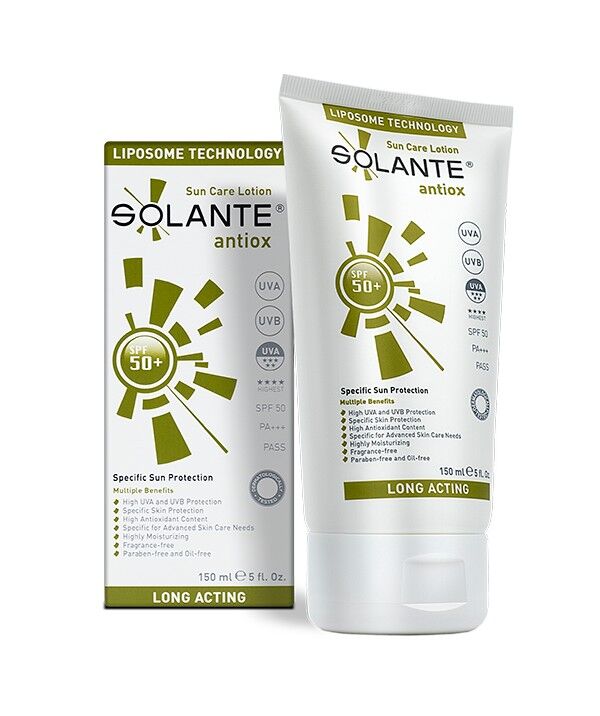 Güneş ışınları, serbest oksijen radikalleri yoluyla cilt hücrelerine zarar verir. Solante® ürünleri, serbest radikallerin yok edilmesinde önemli rol oynayan antioksidanlar açısından çok zengindir. Bu özel formülü sayesinde, güneşten ileri derecede korurken, derinin erken yaşlanma belirtilerinin önlenmesine de yardımcı olur. Cildin taze, canlı ve ipeksi bir görünüme kavuşmasını destekleyen ileri düzey bir deri bakımı sağlar.