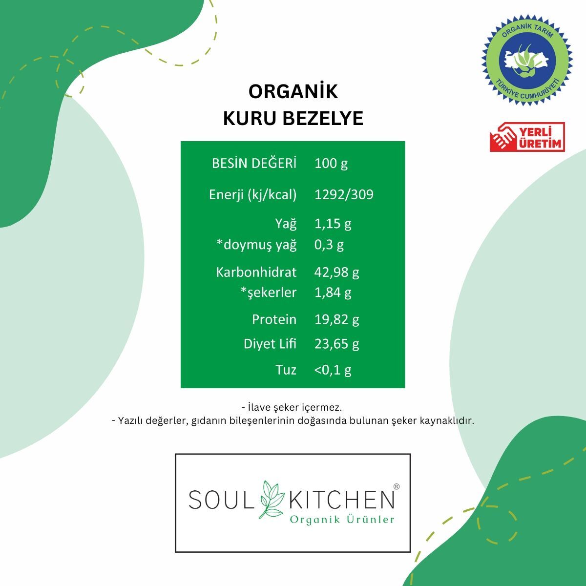 - T.C. 5262 sayılı Organik Tarım Kanunu ve ilgili Organik Tarım Esasları ve Uygulaması'na ilişkin Yönetmeliğe uygun olarak üretilmiş olup, Tarım ve Orman Bakanlığı tarafından yetkilendirilmiş TR-OT-42 yetki no'lu Met Ekolojik Kontrol Sertifikasyon Ltd. Şti. tarafından kontrol edilip sertifikalandırılmıştır.