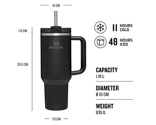 Stanley The Quencher H2.O Flowstate Tumbler 1.18L Pipetli Termos 10-10824-399 Siyah