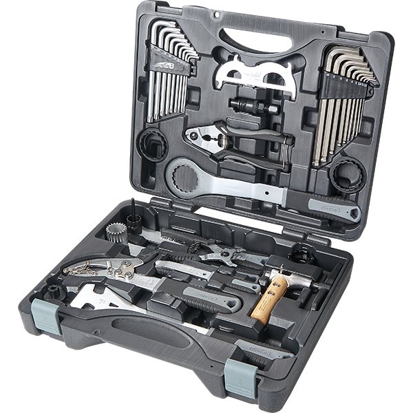 Sağlam taşıma çantası içinde düzenli olarak sunulan bu set, bisikletinizle ilgili her türlü sorunu çözmek için gereken donanımı tek bir kutuda toplar.
