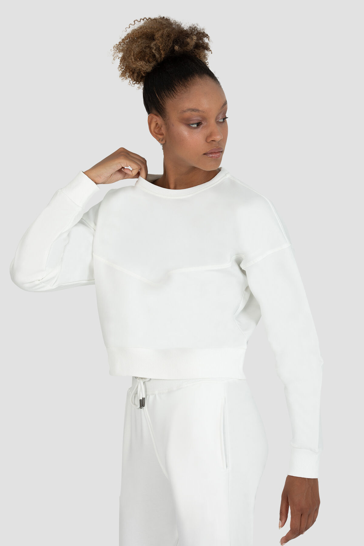 Superstacy Ena Oversize Krem Crop Sweatshirt