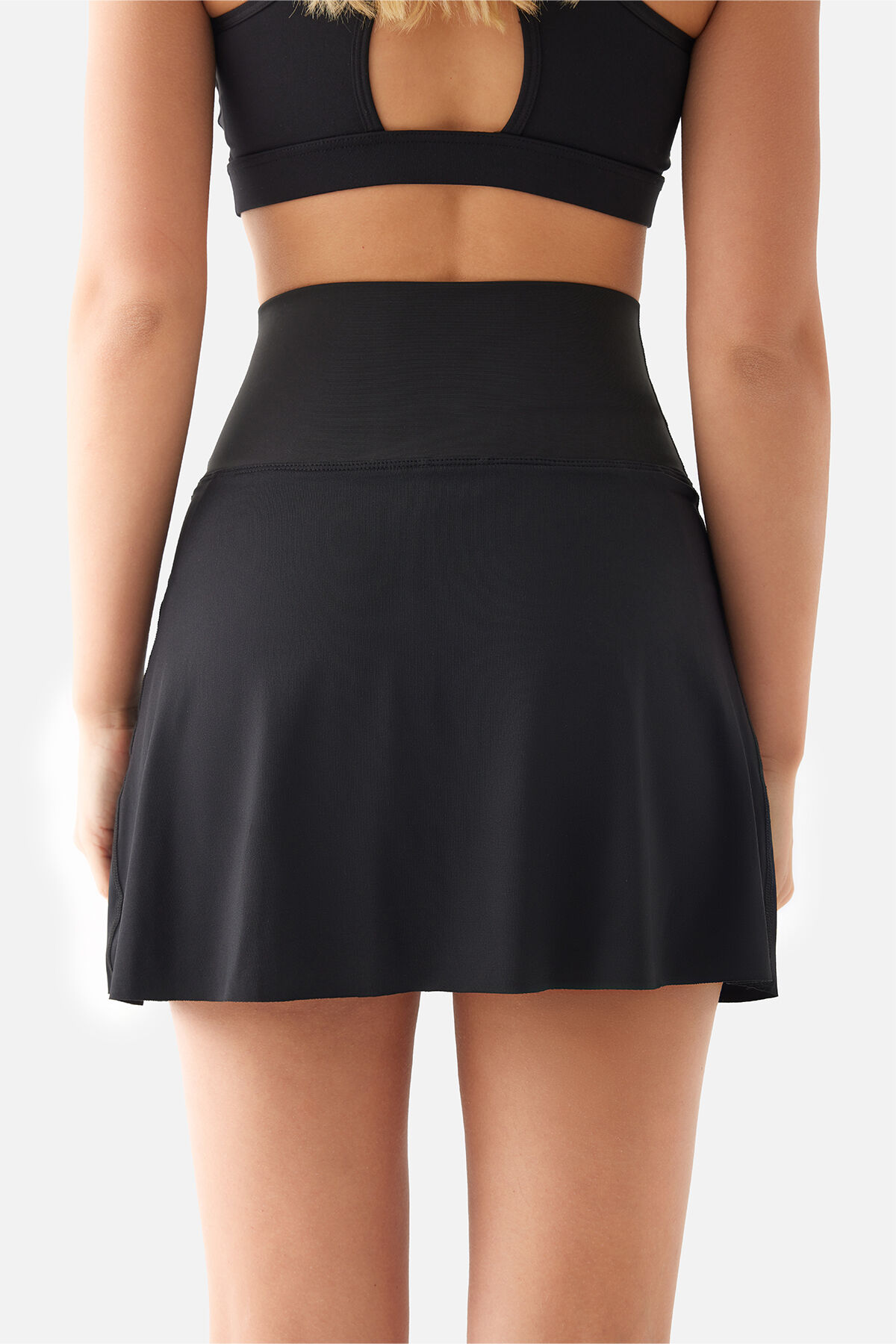 Esnek kemer detayı ve bel bandı, eteğinizi sabit tutar ve hareketlerinizde size destek olur.