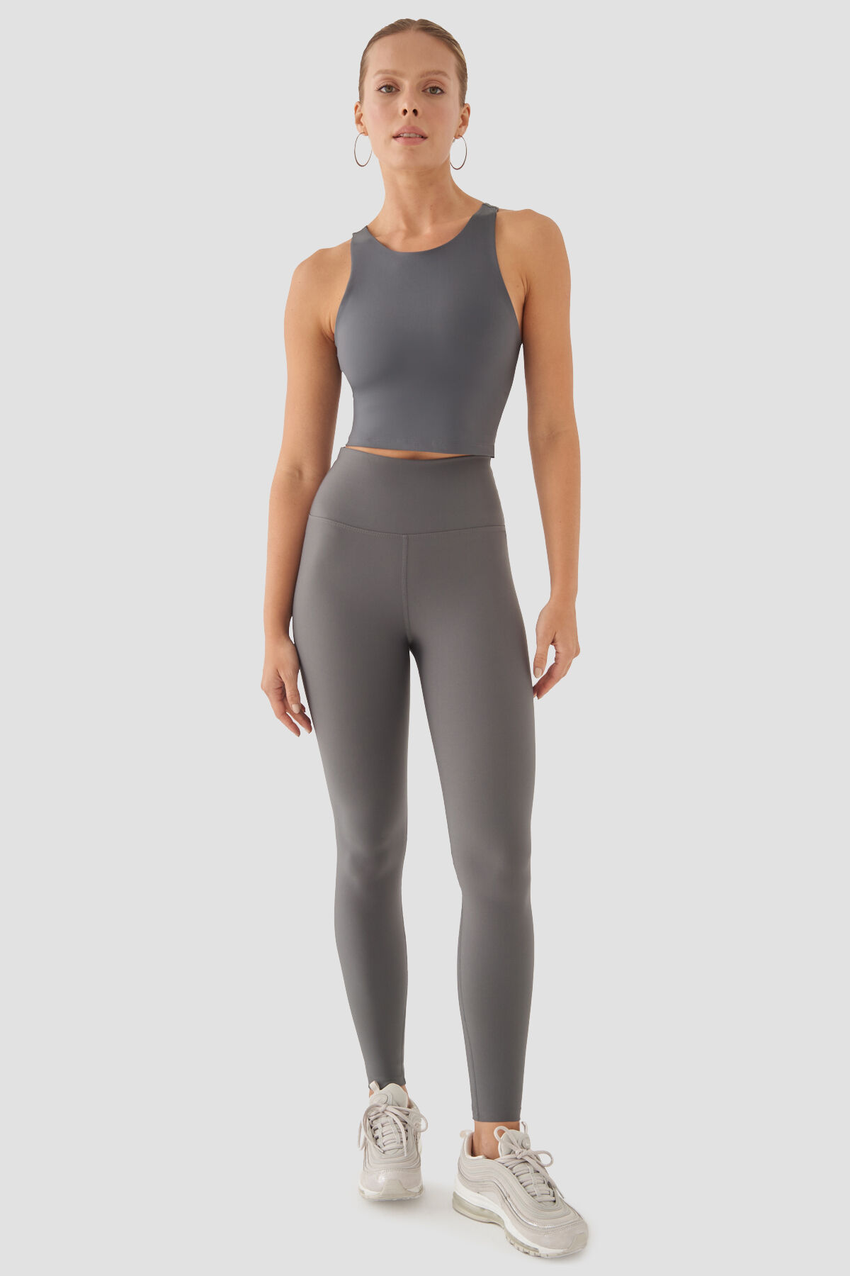 Yüksek Bel Gri Spor Tayt