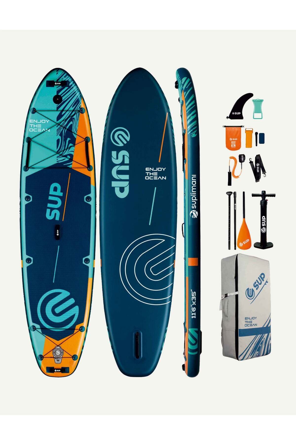 SUPLİMANI Supboard Paddle Board Şişme Sörf Tahtası Tam Set Sup Board Aruba Blue 350x89x15