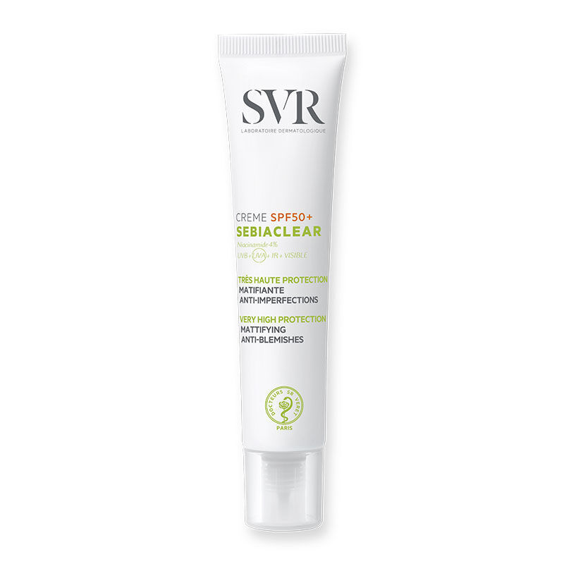 • SVR Sebiaclear Cream SPF50+ 40 ml yüz için 2'si 1 arada: yağlı cilt tipleri için çok yüksek güneş koruması ve matlaştırıcı bakım.