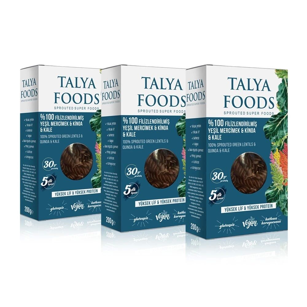 Talya Foods Yeşil Mercimek & Kinoa & Kale Makarna Set 3x200g