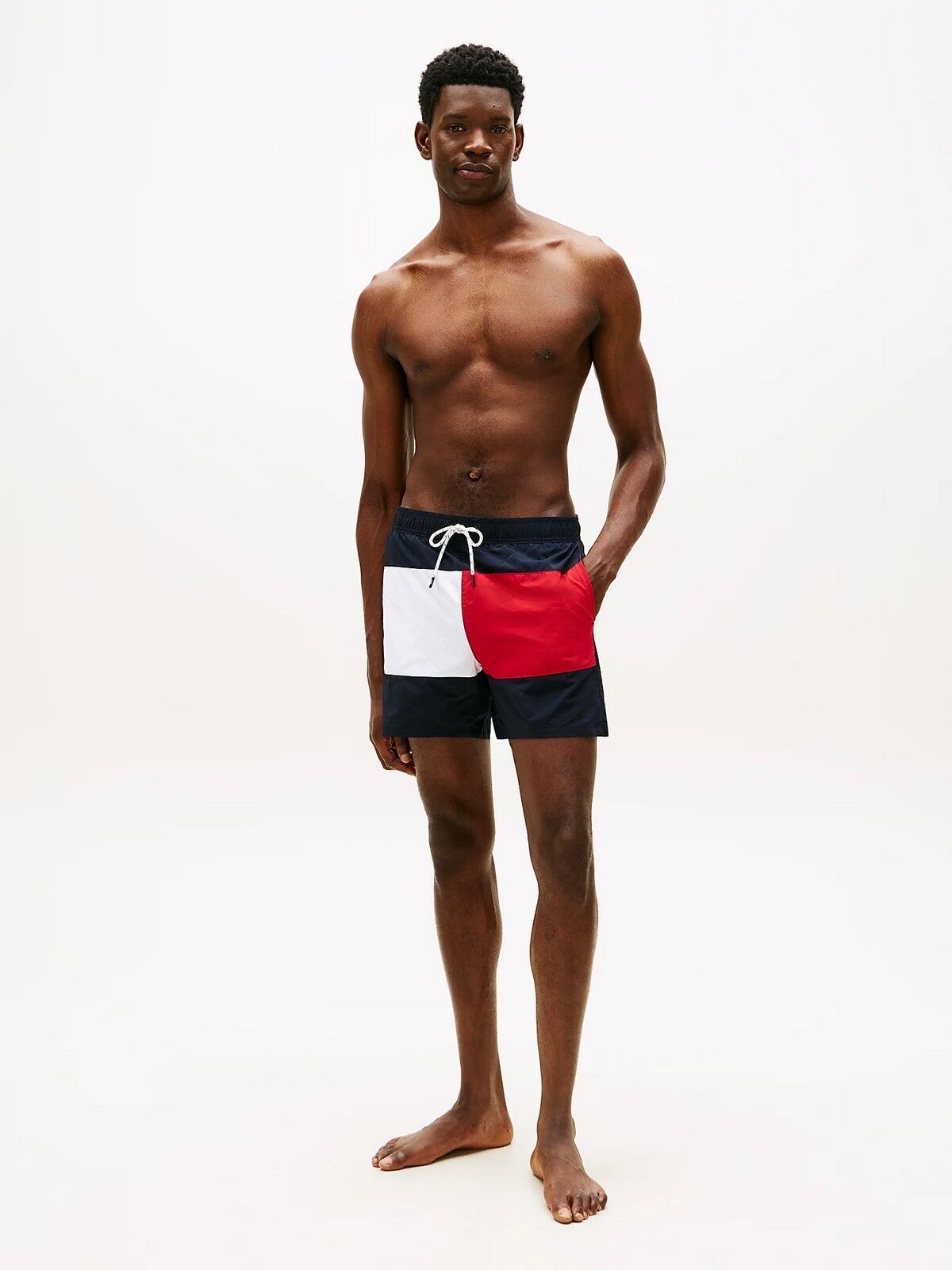 Detaylar Bu orta boy mayo şortlarla tatil görünümünüze retro bir hava katın; karakteristik renk bloklu tasarımıyla öne çıkıyor. Özellikler • Naylon mayo kumaşı • Ön kısımda karakteristik renk bloklu tasarım • İki yan cep • Bir arka cep • Arka cepte karakteristik şerit • Tommy Hilfiger logosu Şekil ve kesim • İç bacak uzunluğu 12,5 cm, Dış bacak uzunluğu 40,5 cm Malzeme ve bakım • %100 naylon