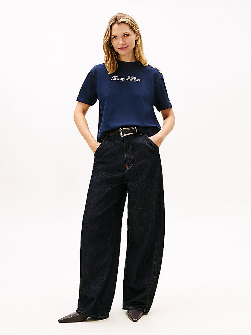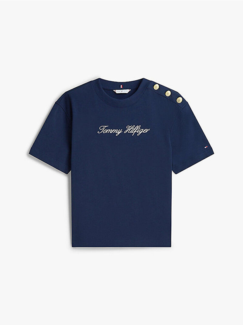 Tommy Hilfiger WW0WW47819 Gold Btn Script Mdrn Ss Kadın Tişört