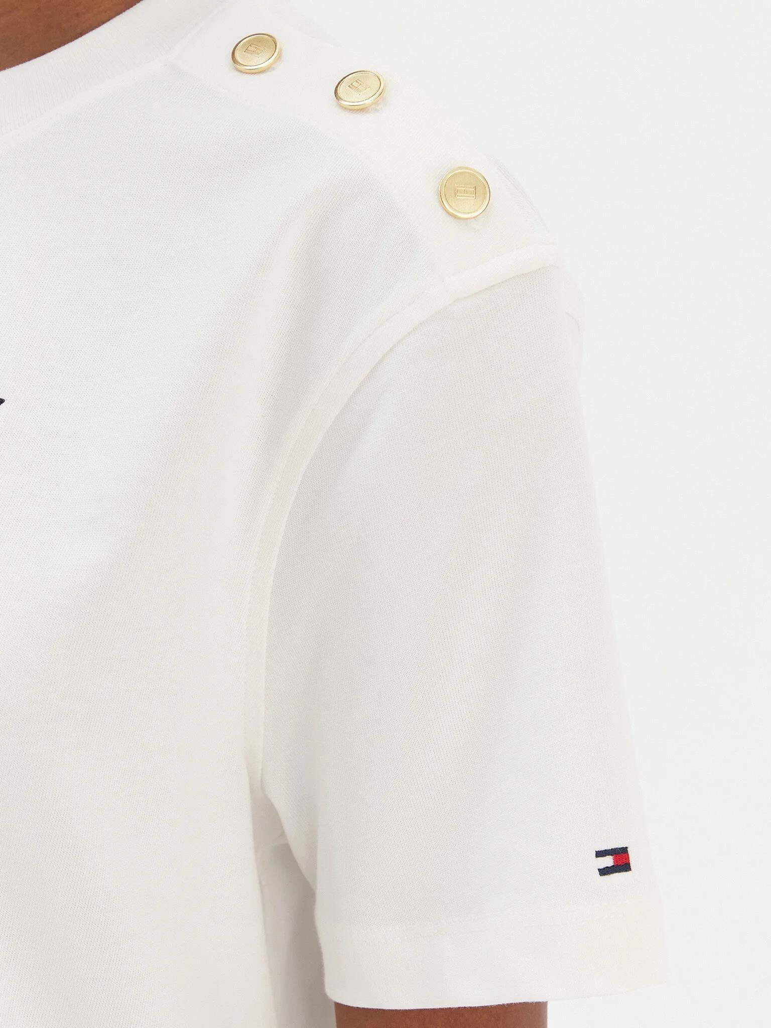 Tommy Hilfiger WW0WW47819 Gold Btn Script Mdrn Ss Kadın Tişört