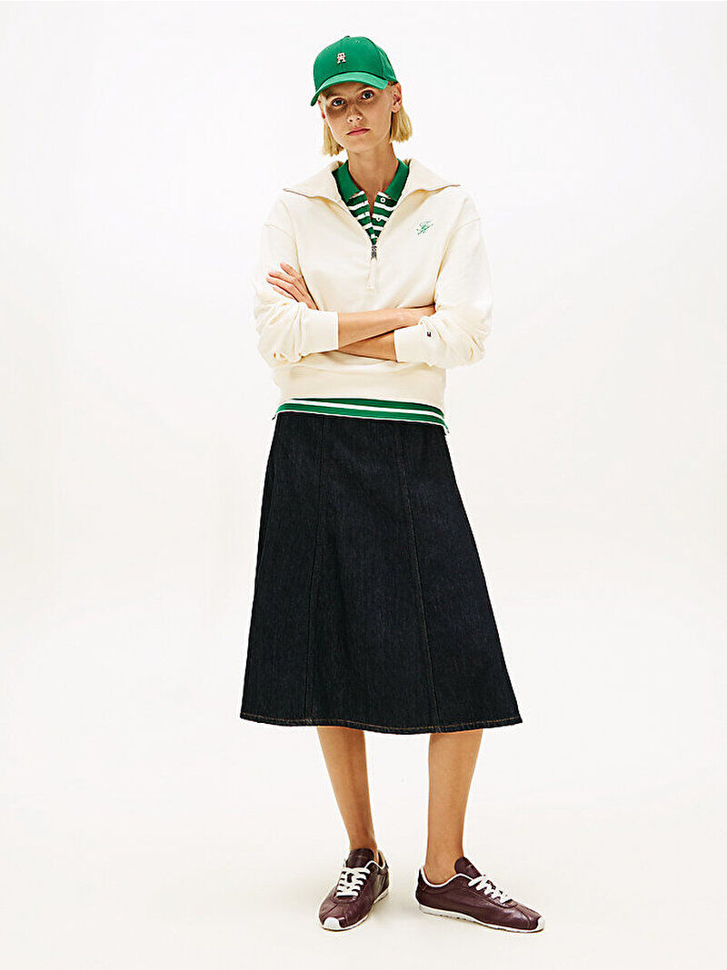 Tommy Hilfiger WW0WW49470 Th Script Half Zip Terry Kadın Sweatshirt