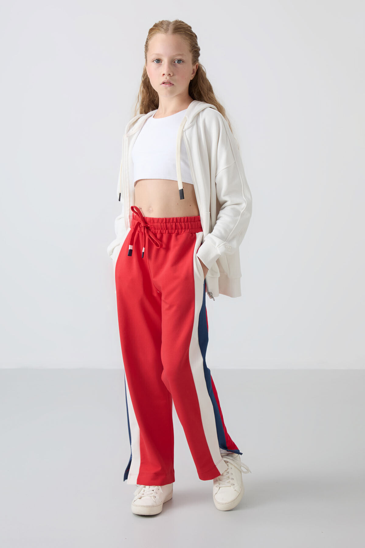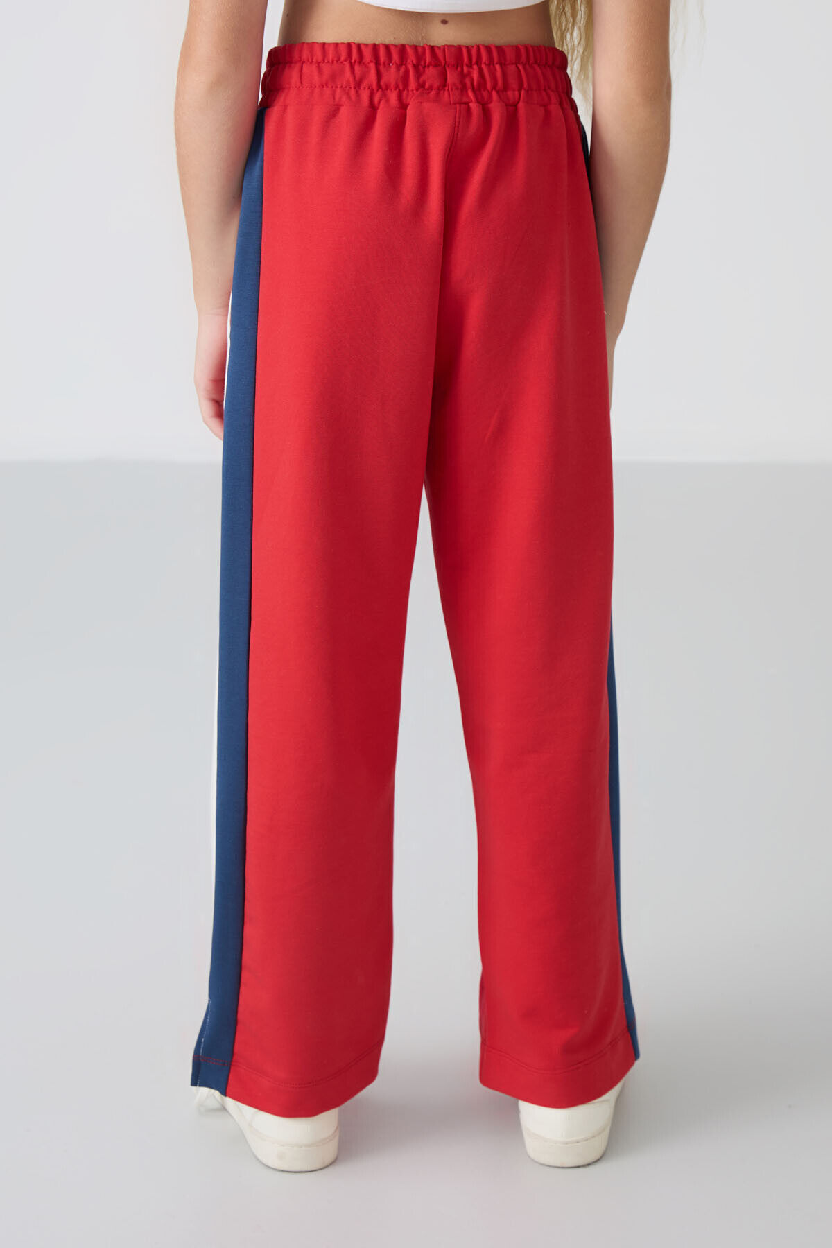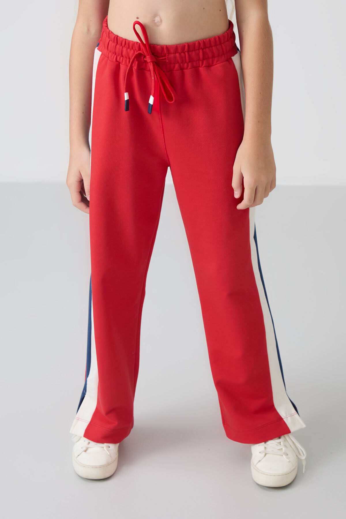 TommyLife Açık Kırmızı Yırtmaç Detaylı Cepli Geniş Paça Kız Çocuk Eşofman Alt - 75141