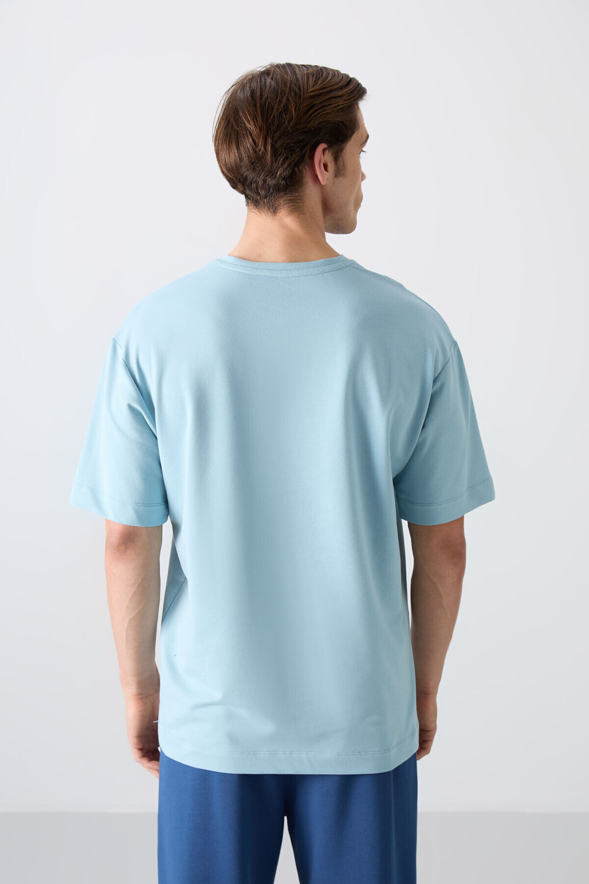 TommyLife Açık Mavi Pamuklu Kalın Yumuşak Dokulu Oversize Fit Baskılı Erkek T-Shirt - 88343