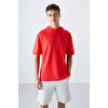 TommyLife Açık Mavi Pamuklu Kalın Yüzeyi Dokulu Oversize Fit Basic Erkek T-Shirt - 88335