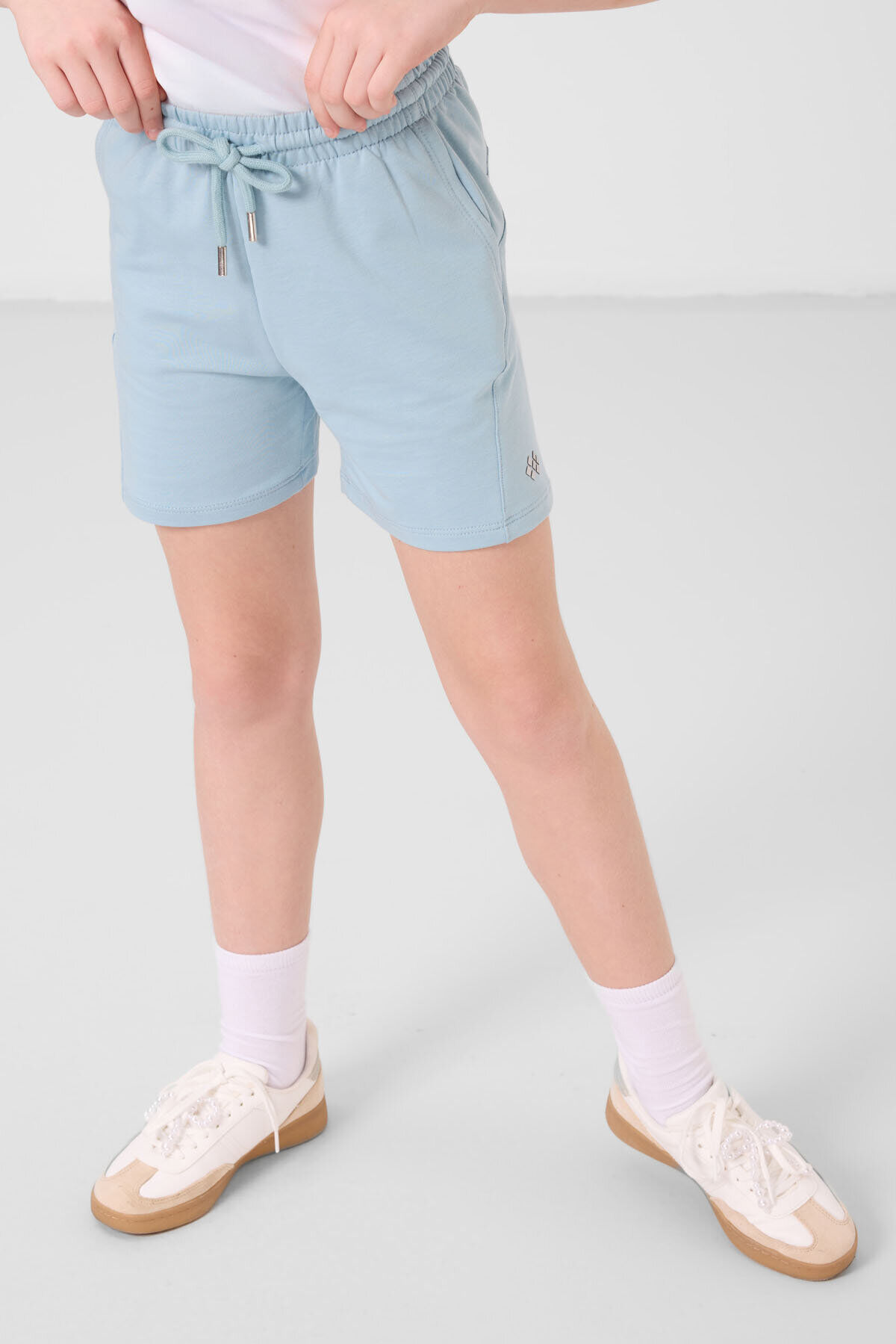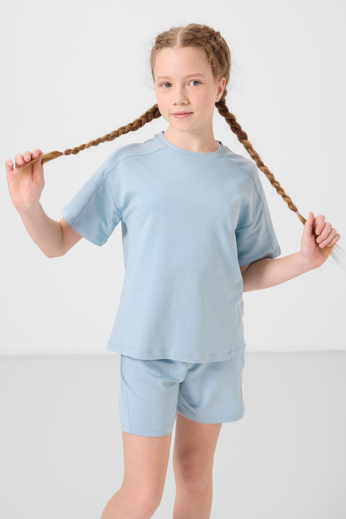Açık Mavi Pamuklu Yumuşak Dokulu Standart Fit Basic Kız Çocuk Şort Takım - 75184