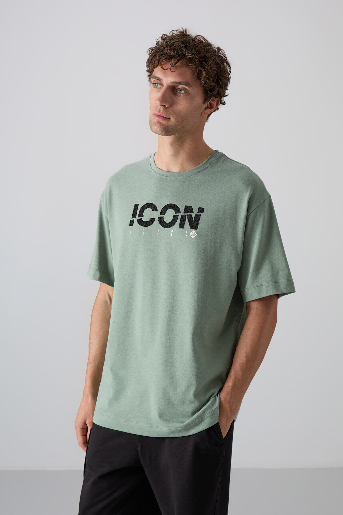 TommyLife Açık Yeşil Pamuklu Kalın Yumuşak Dokulu Oversize Fit Baskılı Erkek T-Shirt - 88331