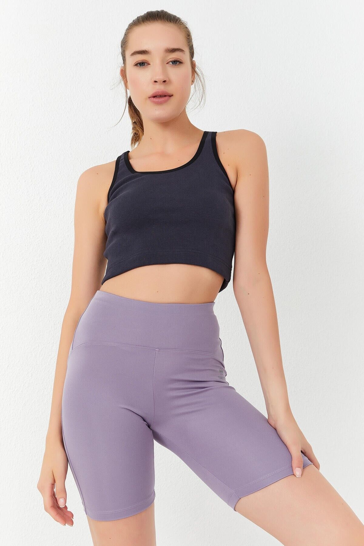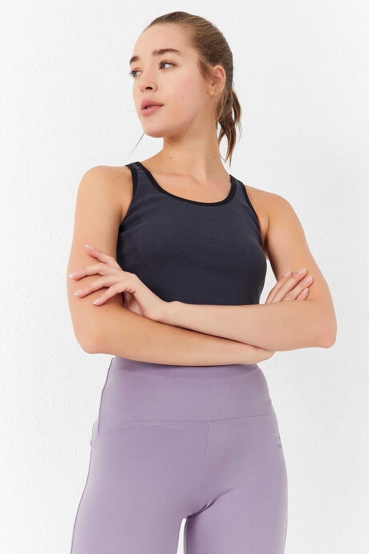 TommyLife Antrasit Basic Sıfır Kol Dar Kalıp U Yaka Kadın Crop Top Atlet - 97162
