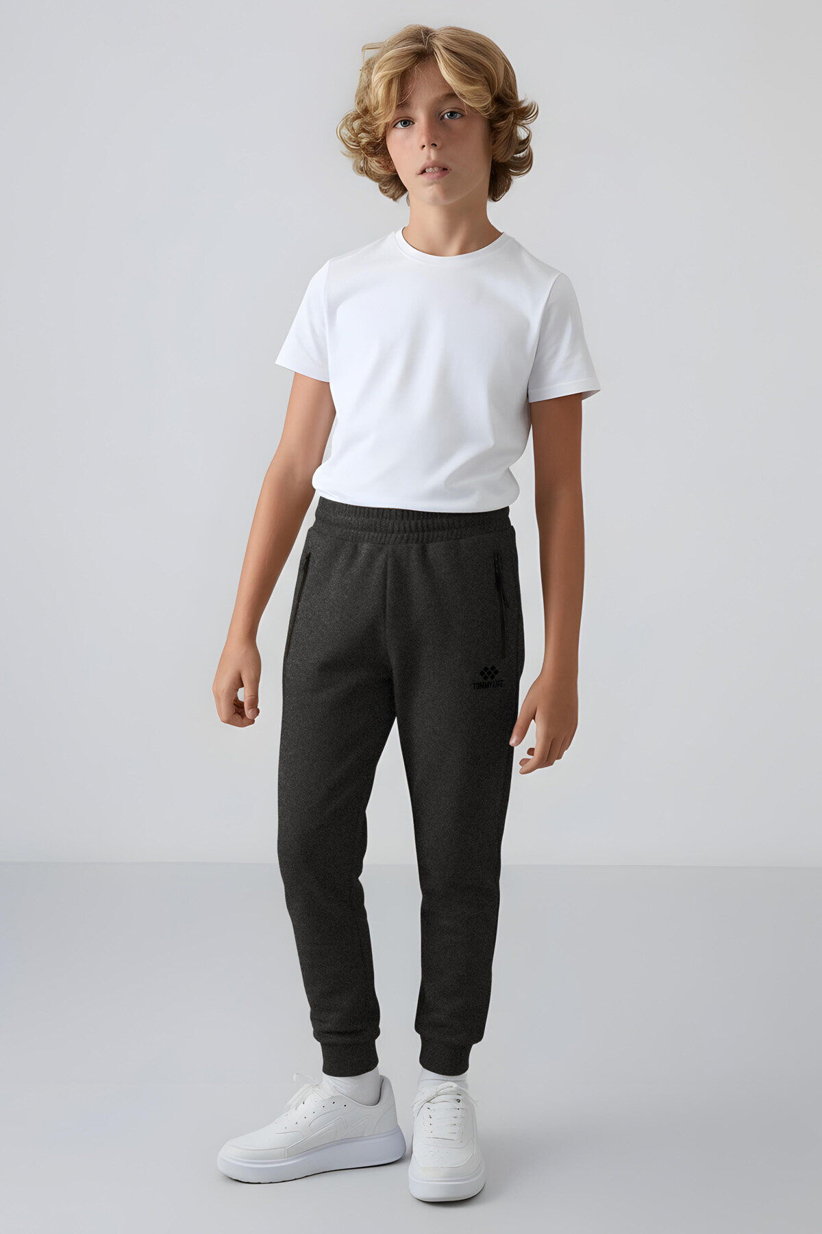TommyLife Antrasit Melanj Fermuarlı Standart Fit İnce Erkek Çocuk Eşofman Alt - 64042