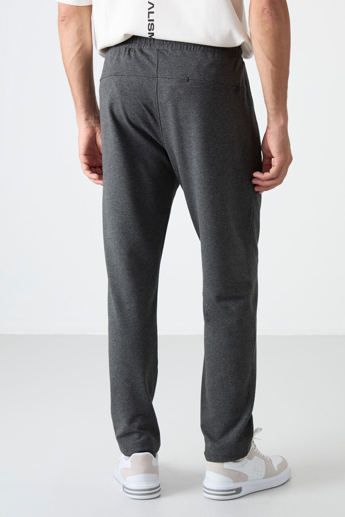 TommyLife Antrasit Melanj Fermuarlı Üç Cepli Dar Kalıp Klasik Paça Erkek Eşofman Alt - 84671