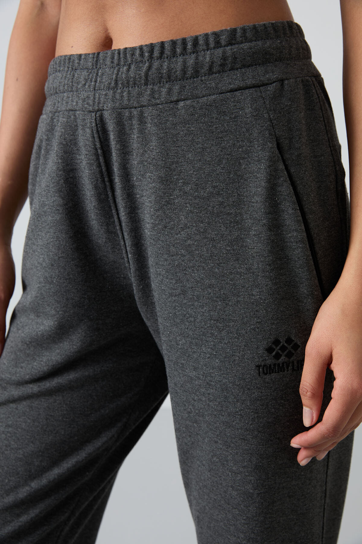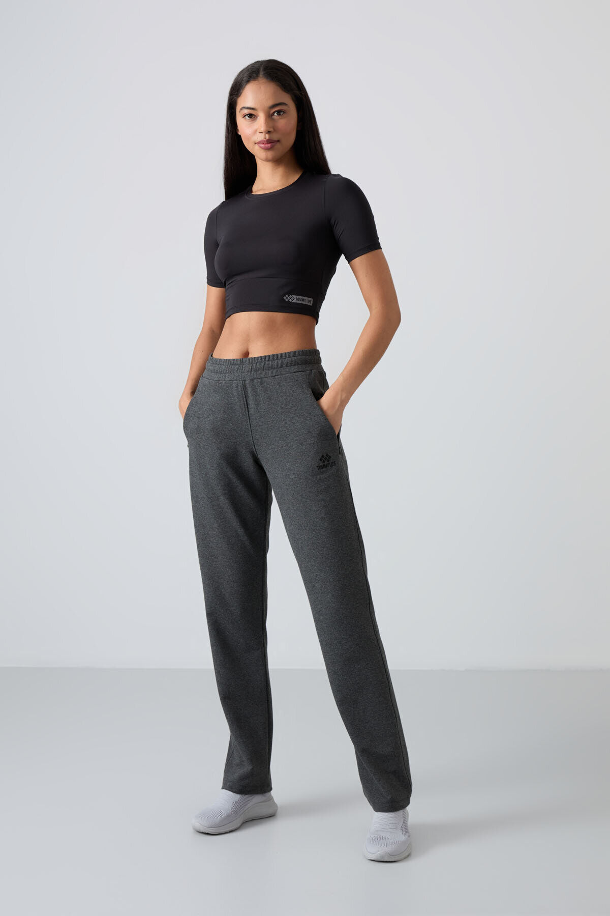Antrasit Melanj Gizli Fermuar Cepli Rahat Form Klasik Paça Kadın Eşofman Alt - 94148
