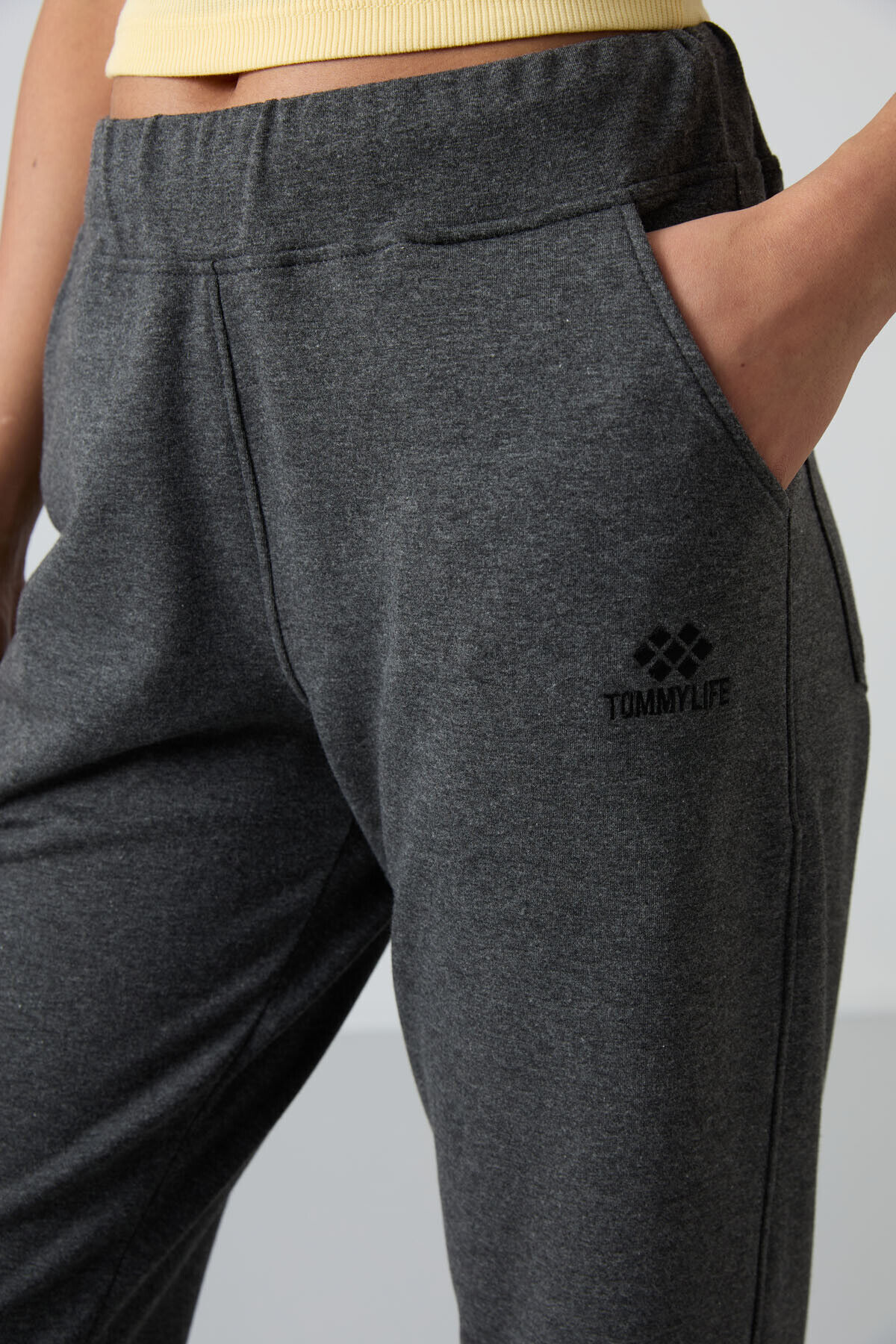 TommyLife Antrasit Melanj Yüksek Bel Cepli Rahat Form Klasik Paça Kadın Eşofman Alt - 94185