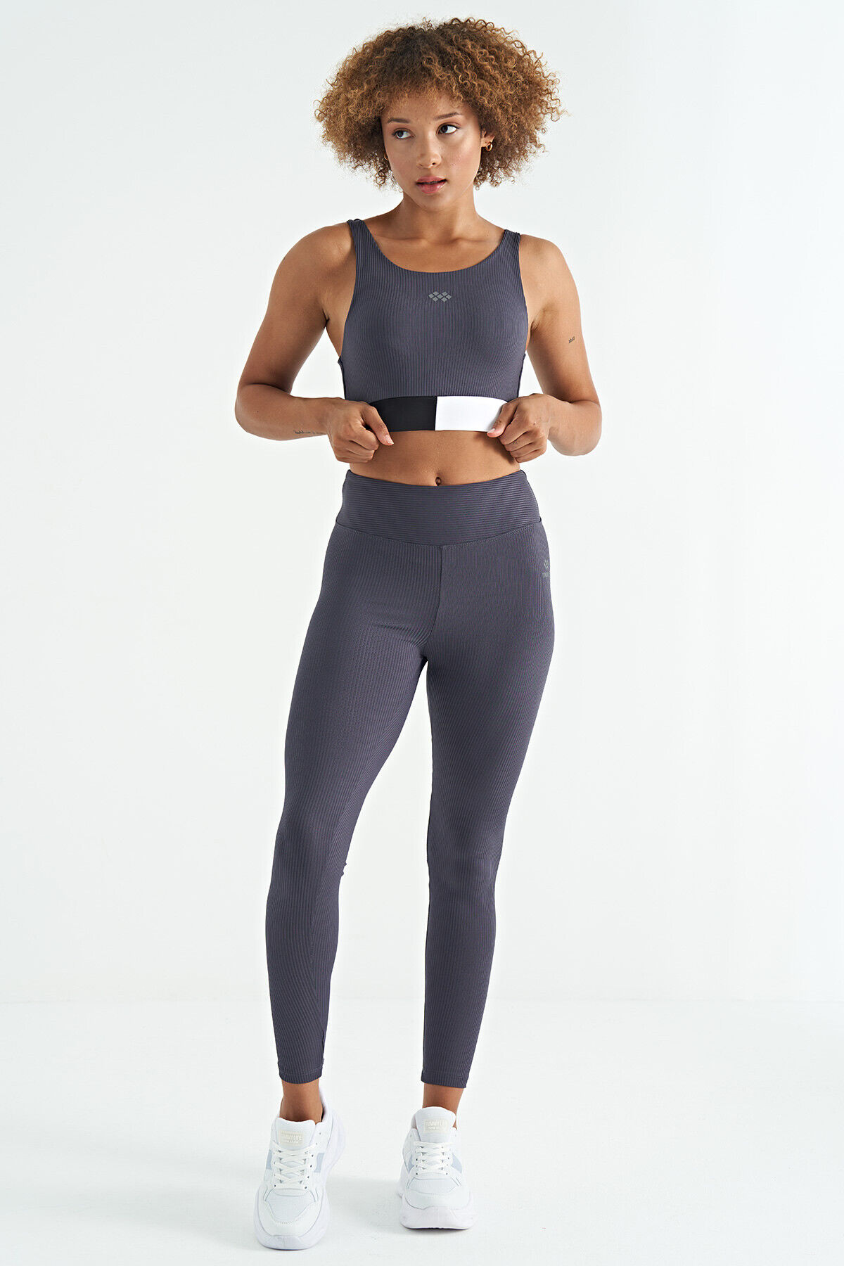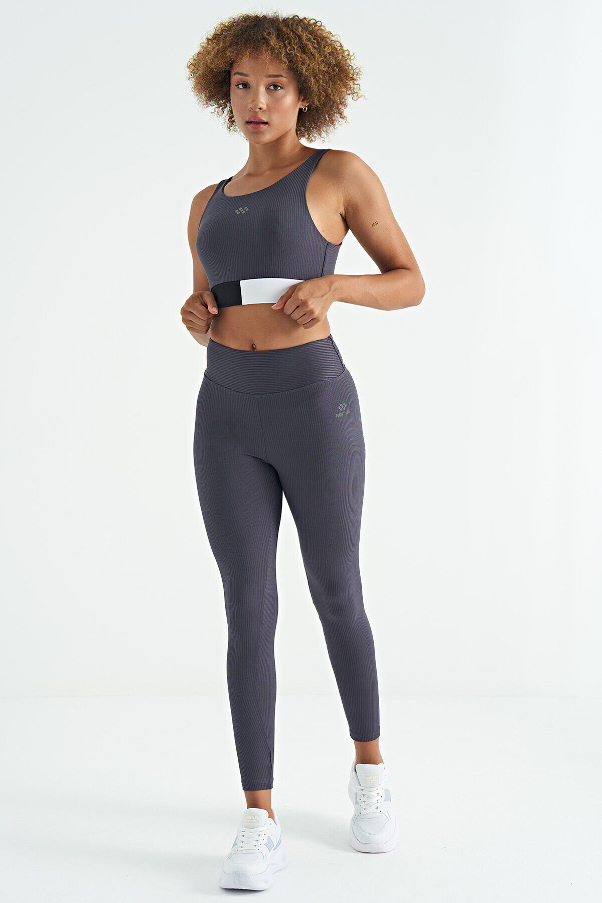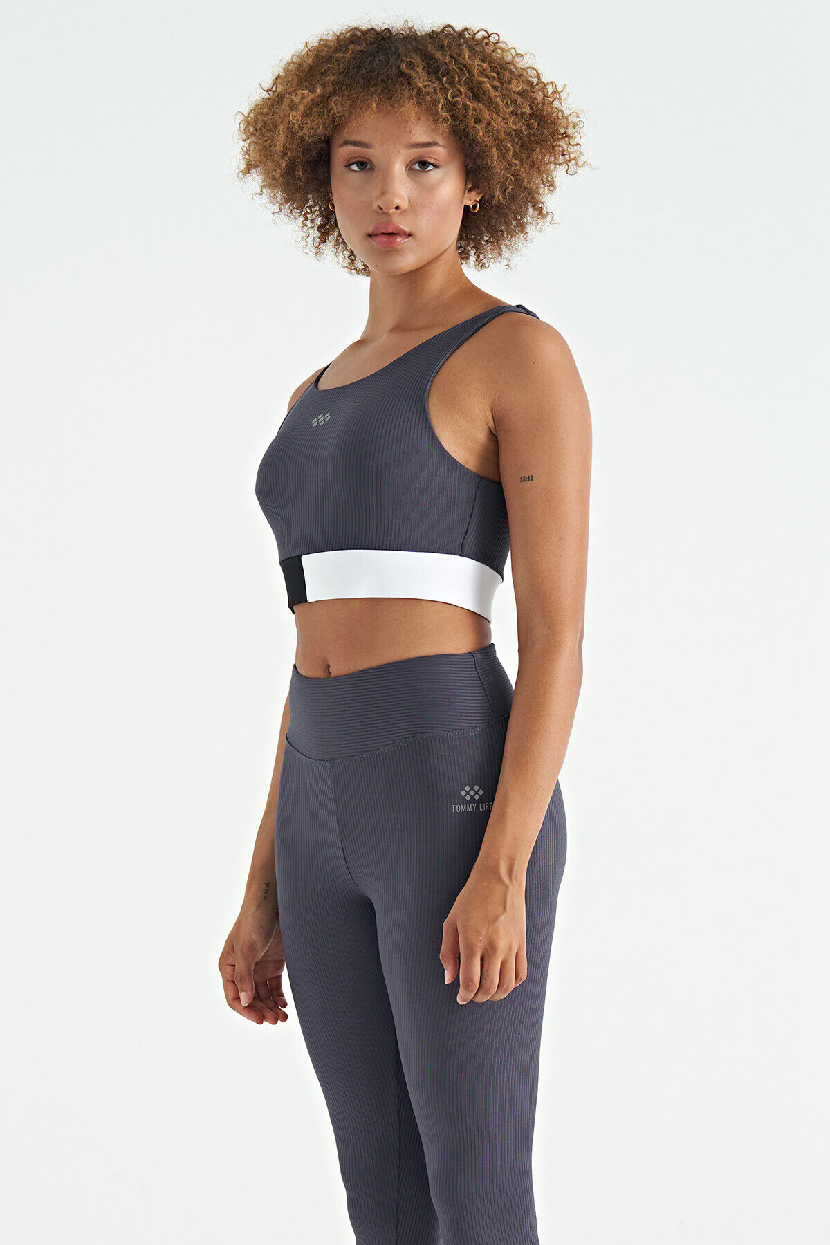 TommyLife Antrasit Renk Bloklu Logo Baskılı Dar Kalıp Fitilli Kadın Büstiyer - 97275