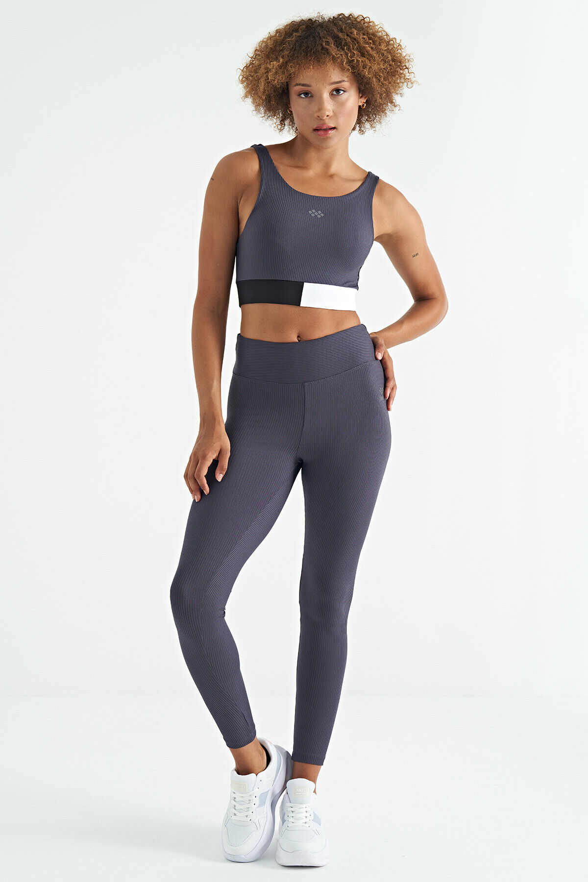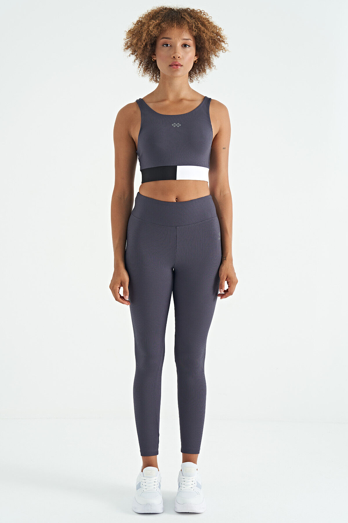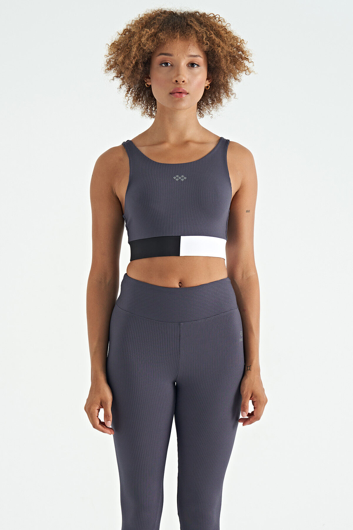 TommyLife Antrasit Renk Bloklu Logo Baskılı Dar Kalıp Fitilli Kadın Büstiyer - 97275