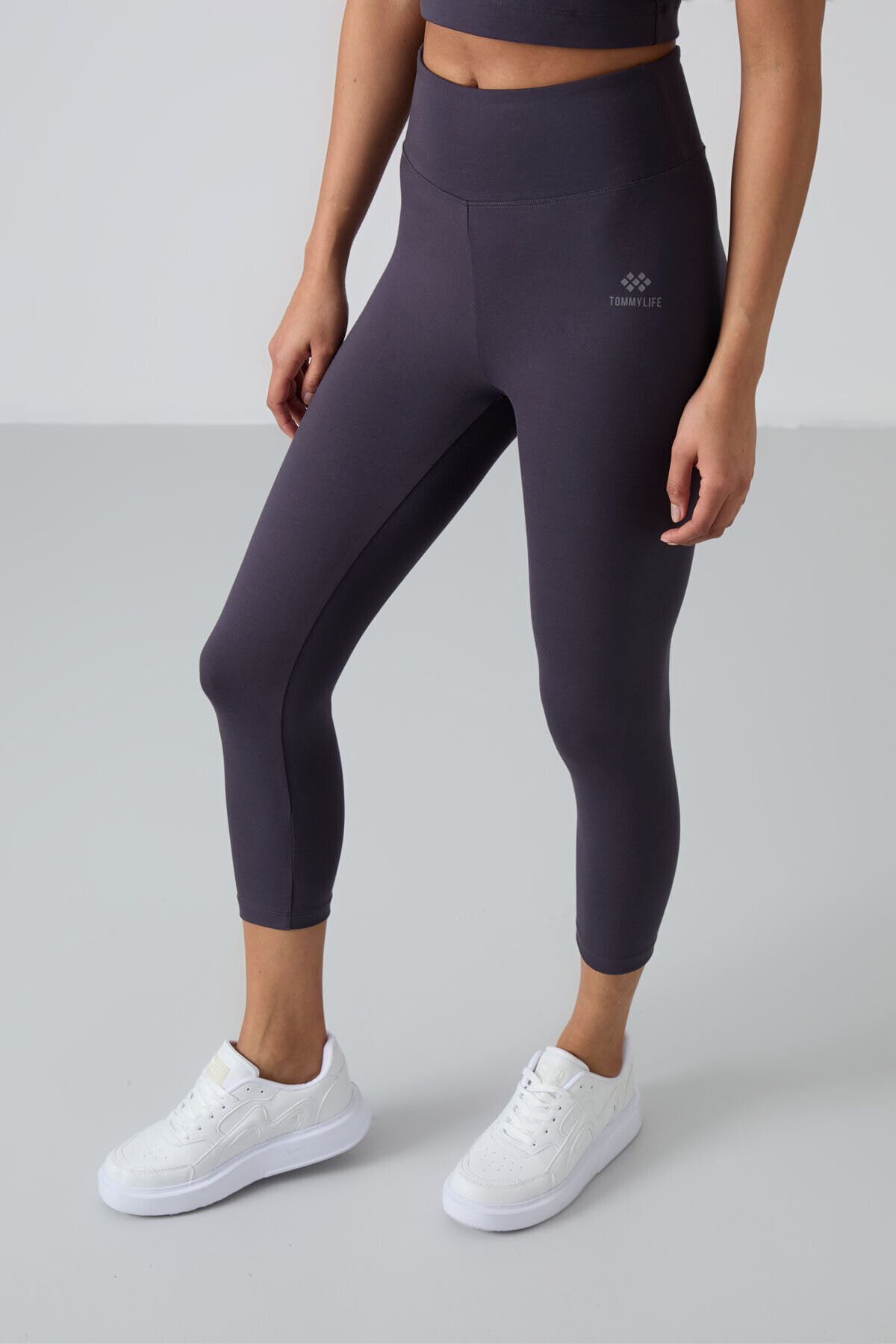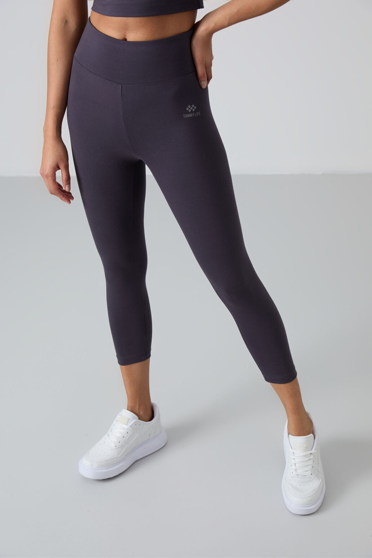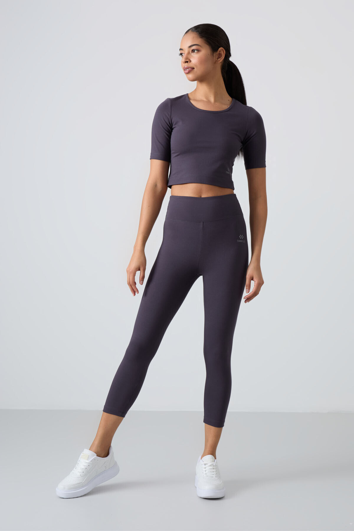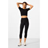TommyLife Antrasit Yüksek Bel Kapri-Crop T-Shirt Slim Fit Kadın Tayt Takım - 95285