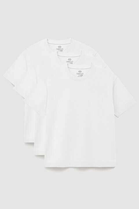 TommyLife Basic O Yaka Büyük Beden 3lü Paket Beyaz Erkek T-Shirt 88072
