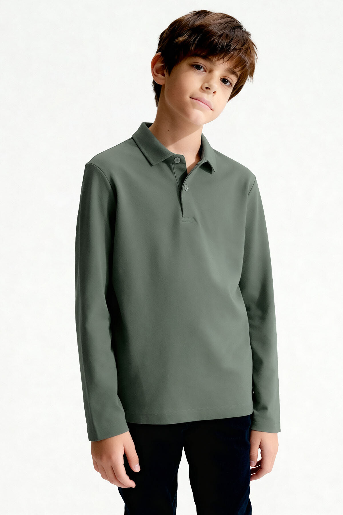 Basic Polo Yaka 2li Paket Siyah-Çağla Unisex Çocuk T-Shirt - 11170