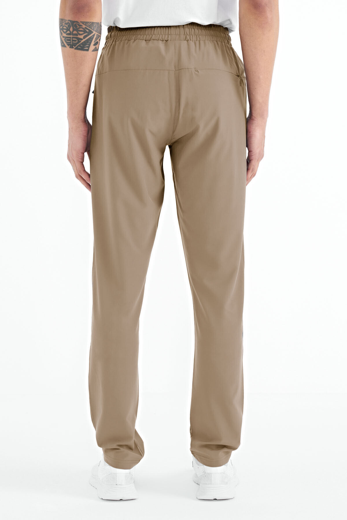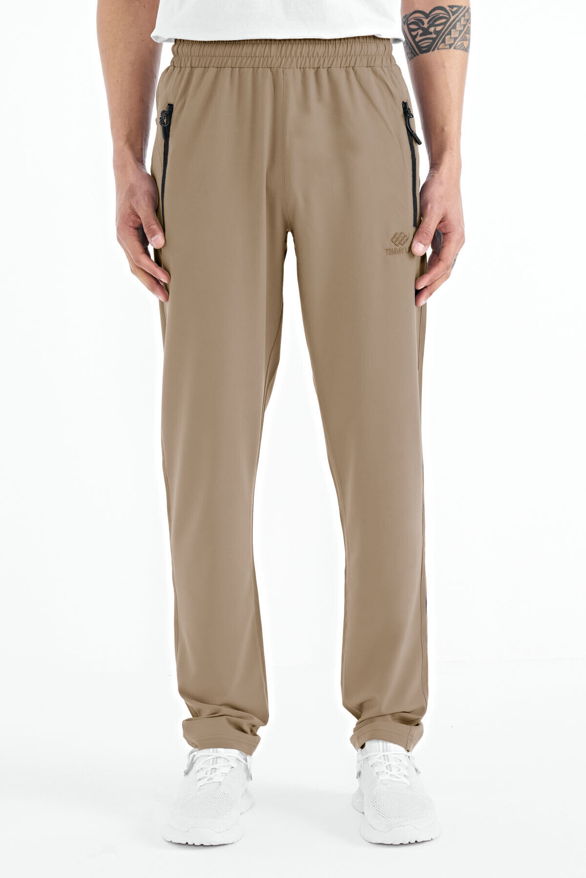 TommyLife Bej Erkek Fermuarlı Üç Cepli Standart Kalıp Klasik Paça Eşofman Alt - 84768