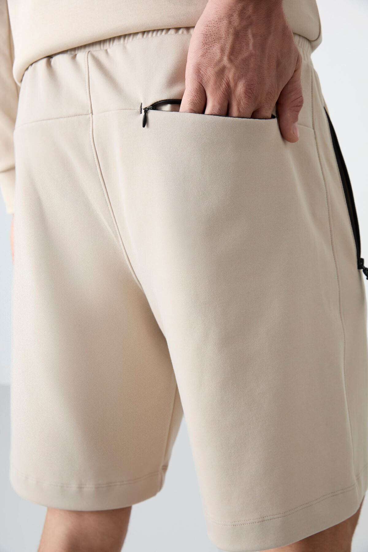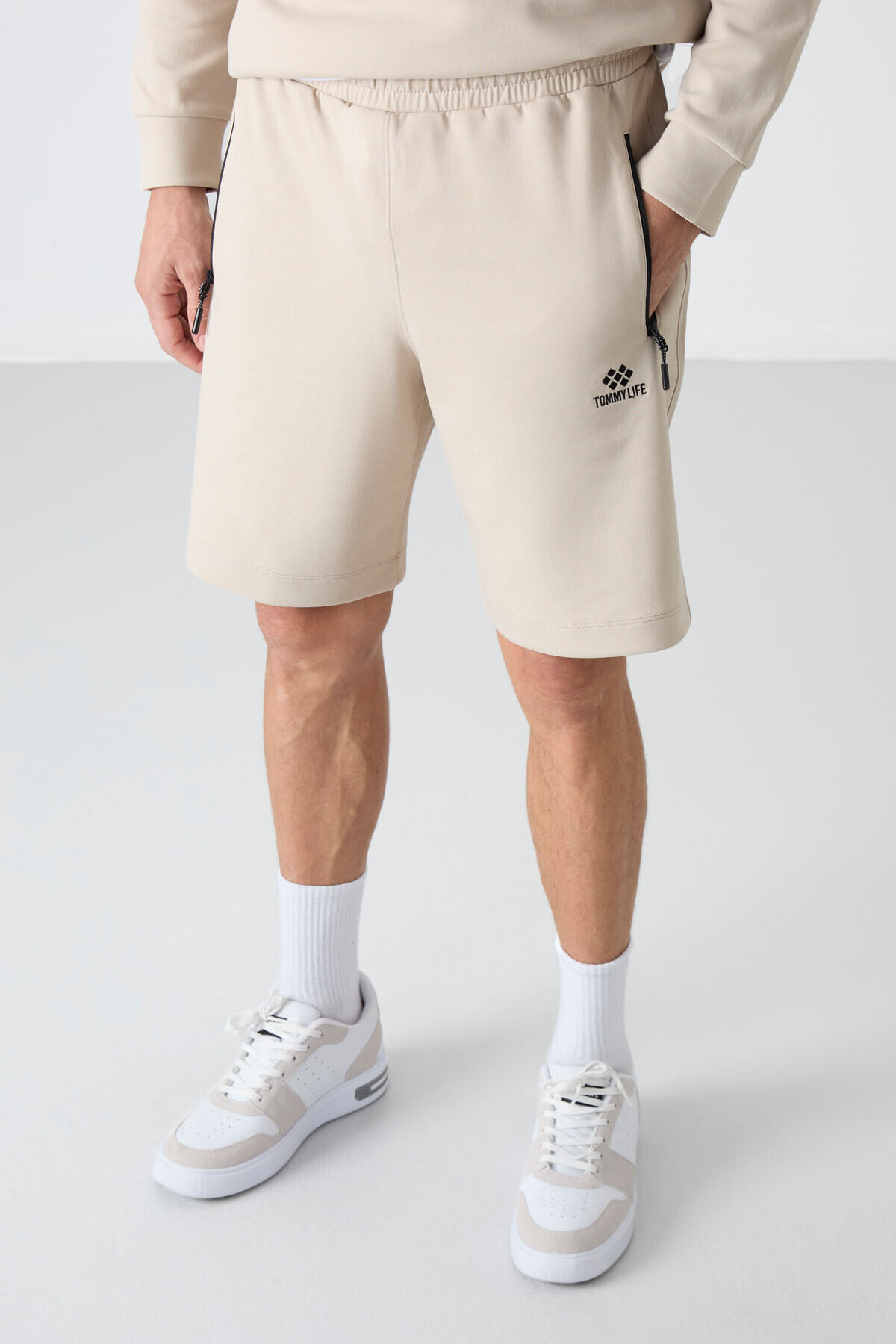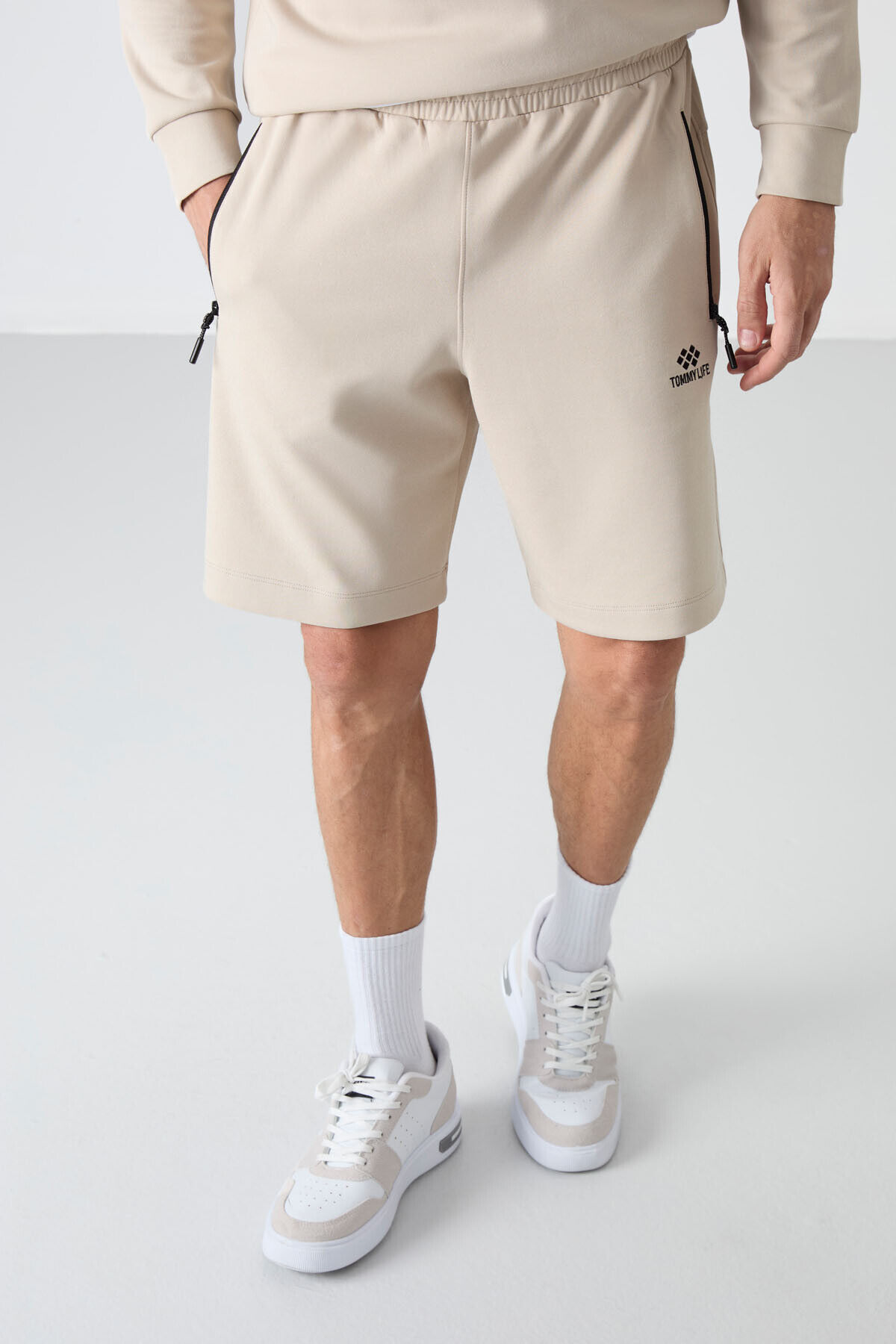 TommyLife Bej Gizli Fermuar Arka Cepli Bağcıklı Standart Kalıp Erkek Şort - 81136