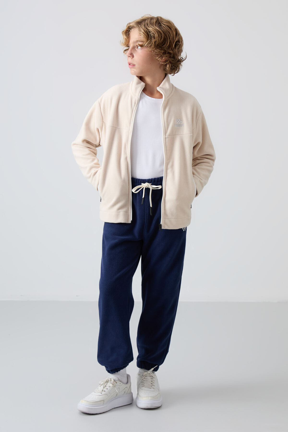 TommyLife Bej Kalın Yumuşak Dokulu Standart Fit Nakışlı Polar Erkek Çocuk Sweatshirt - 11223